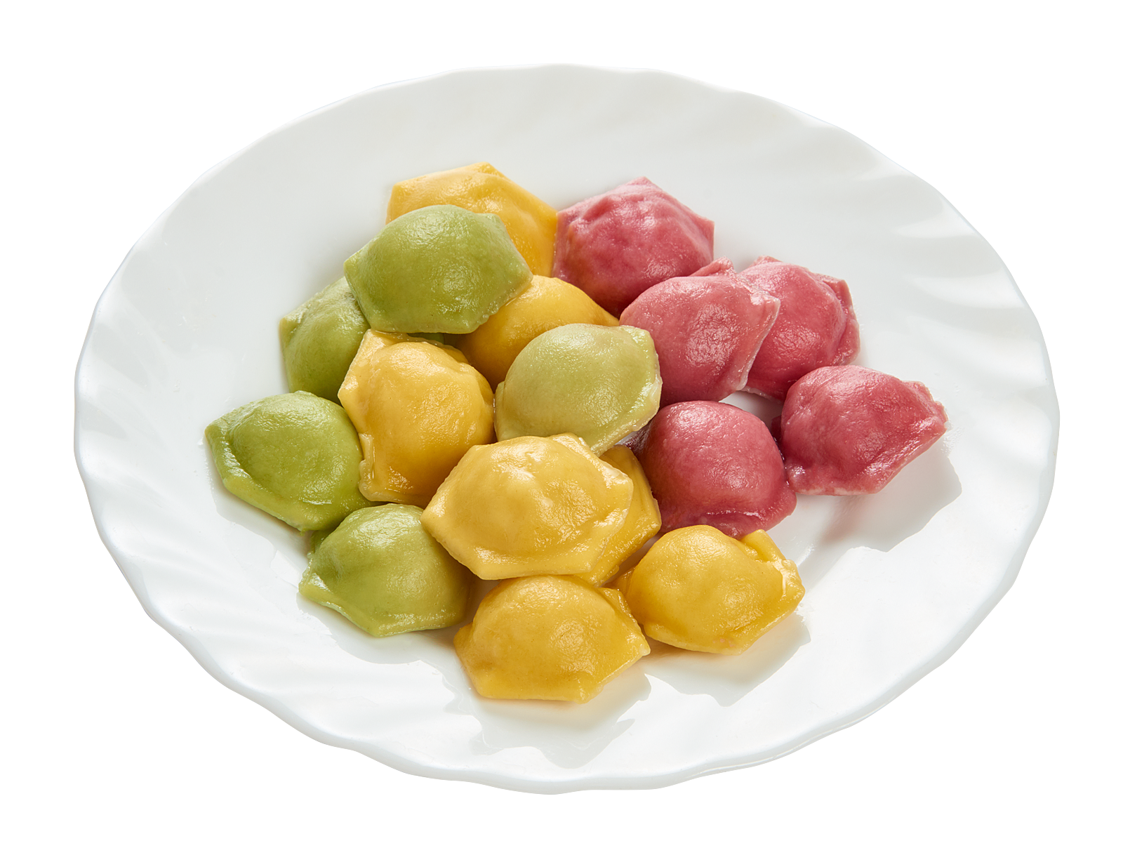 Тарелка с пельменями разноцветными