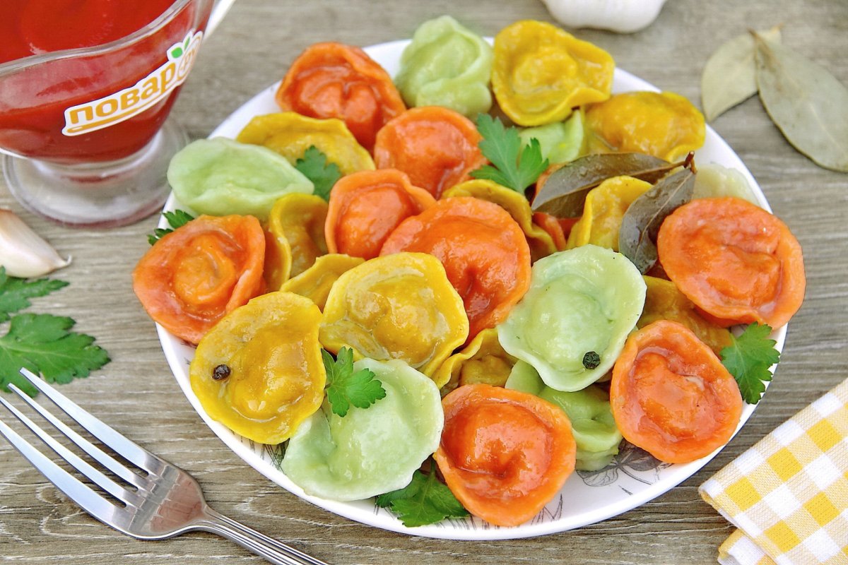 Пельмени из цветного теста