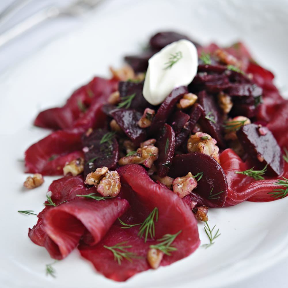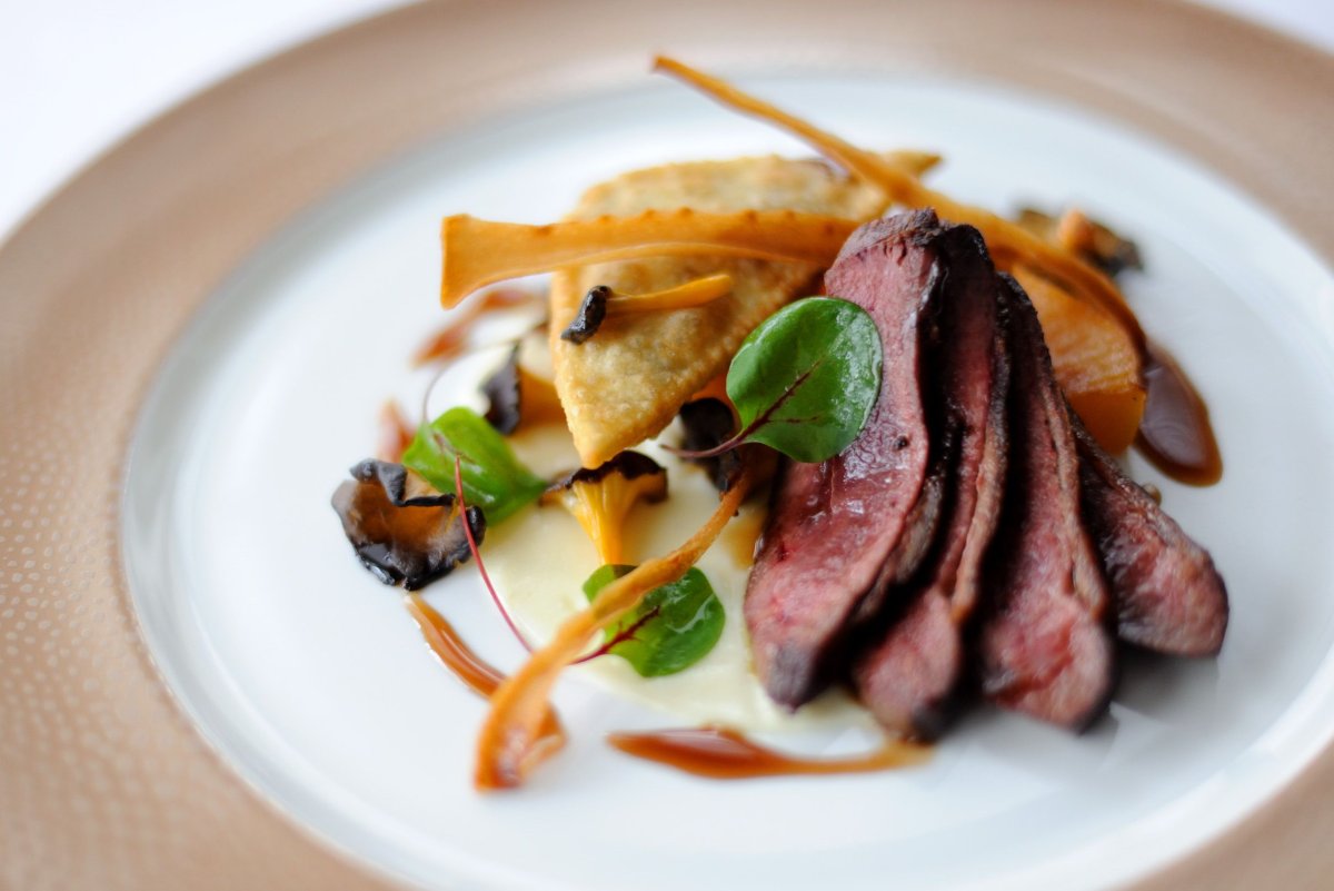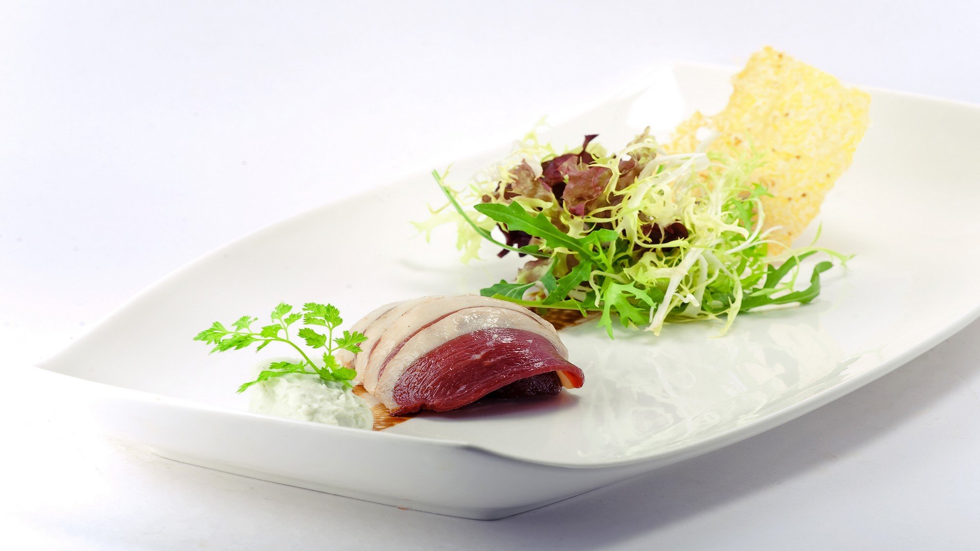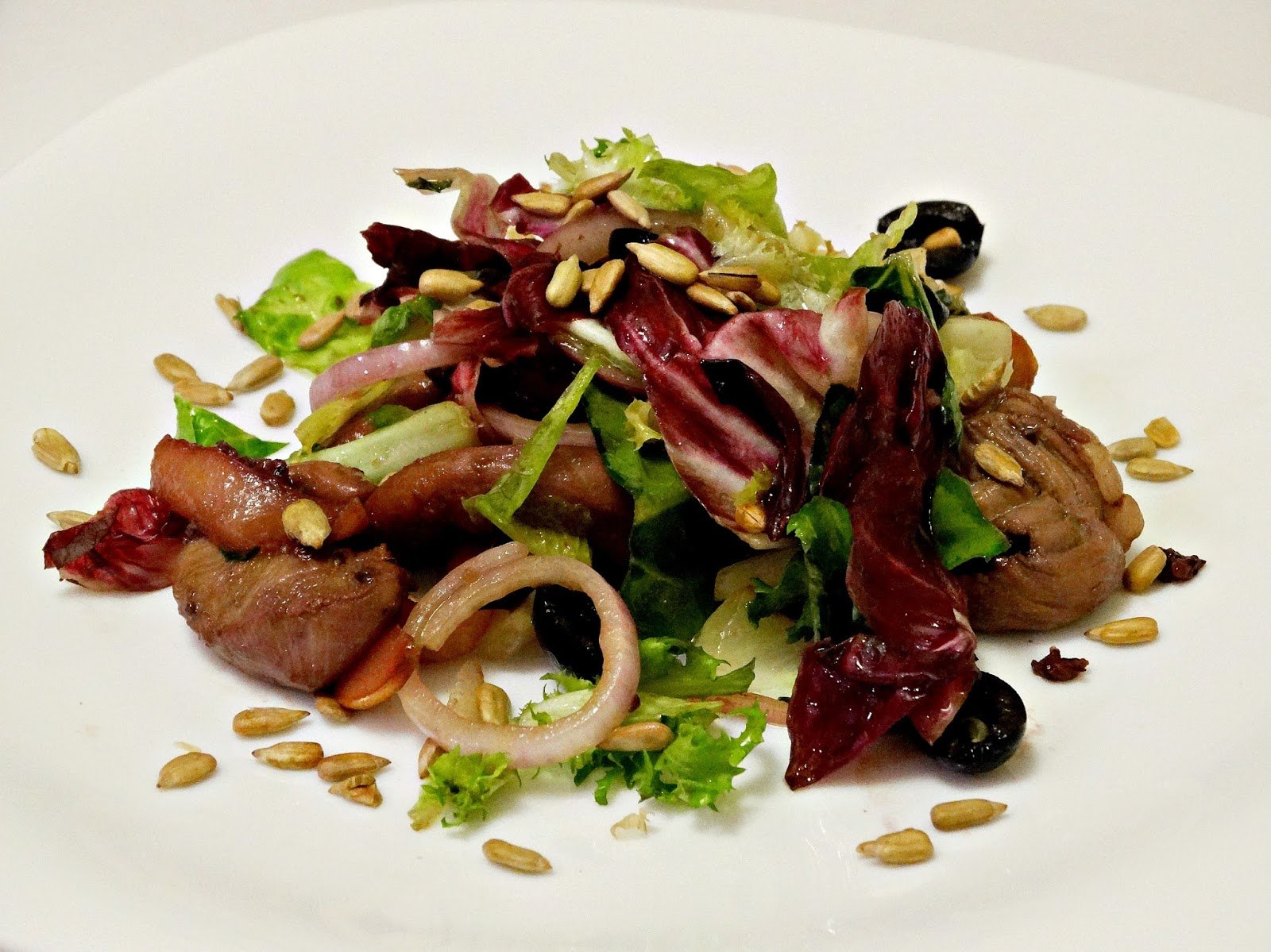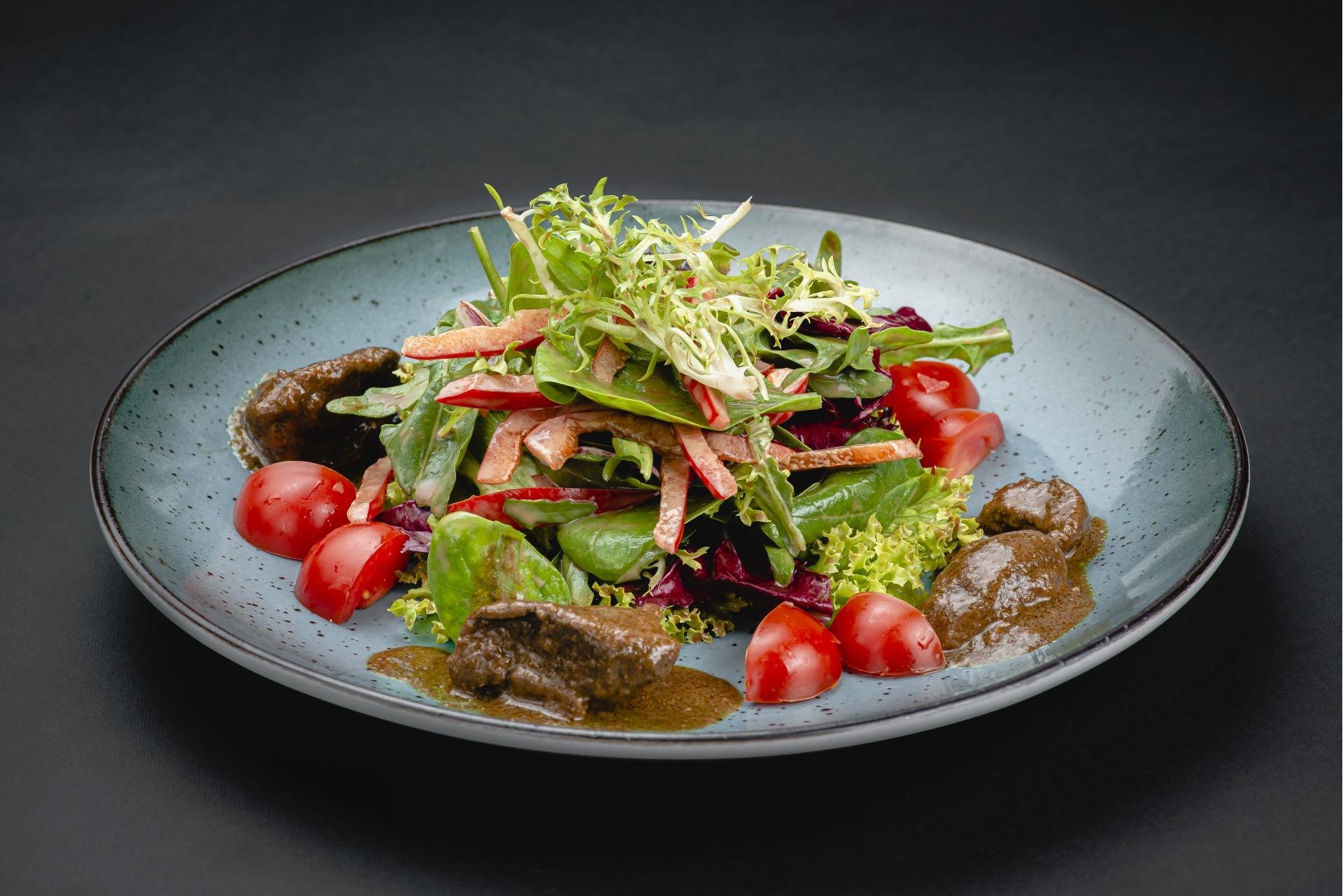 Тёплый салат с утиной грудкой и вишнёвым конфи