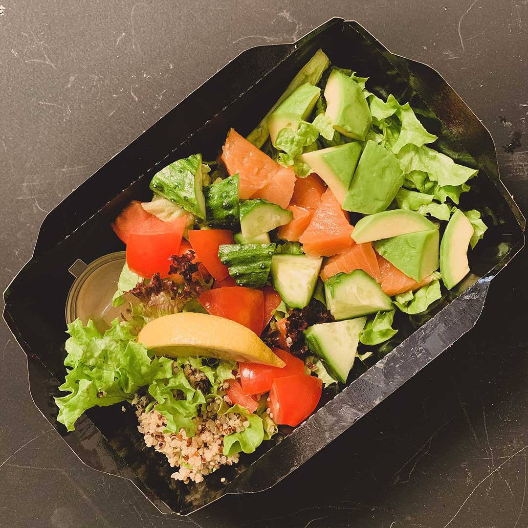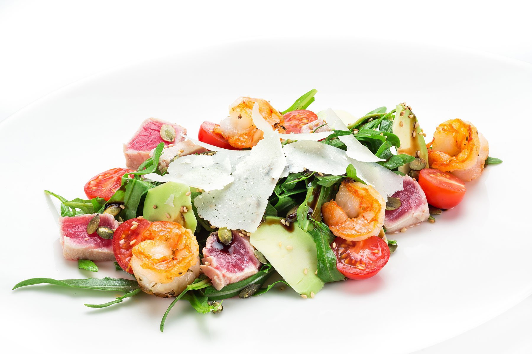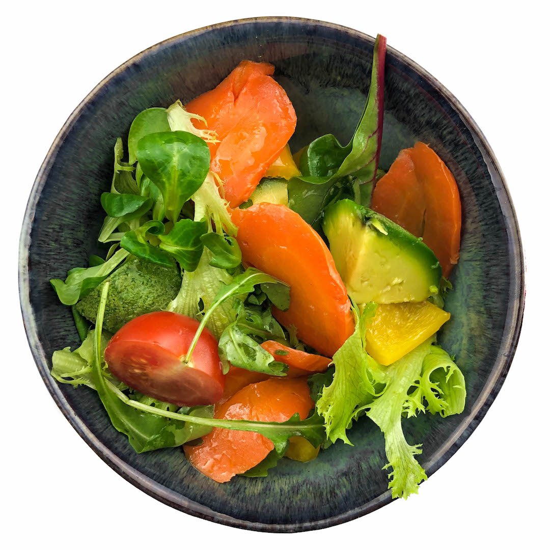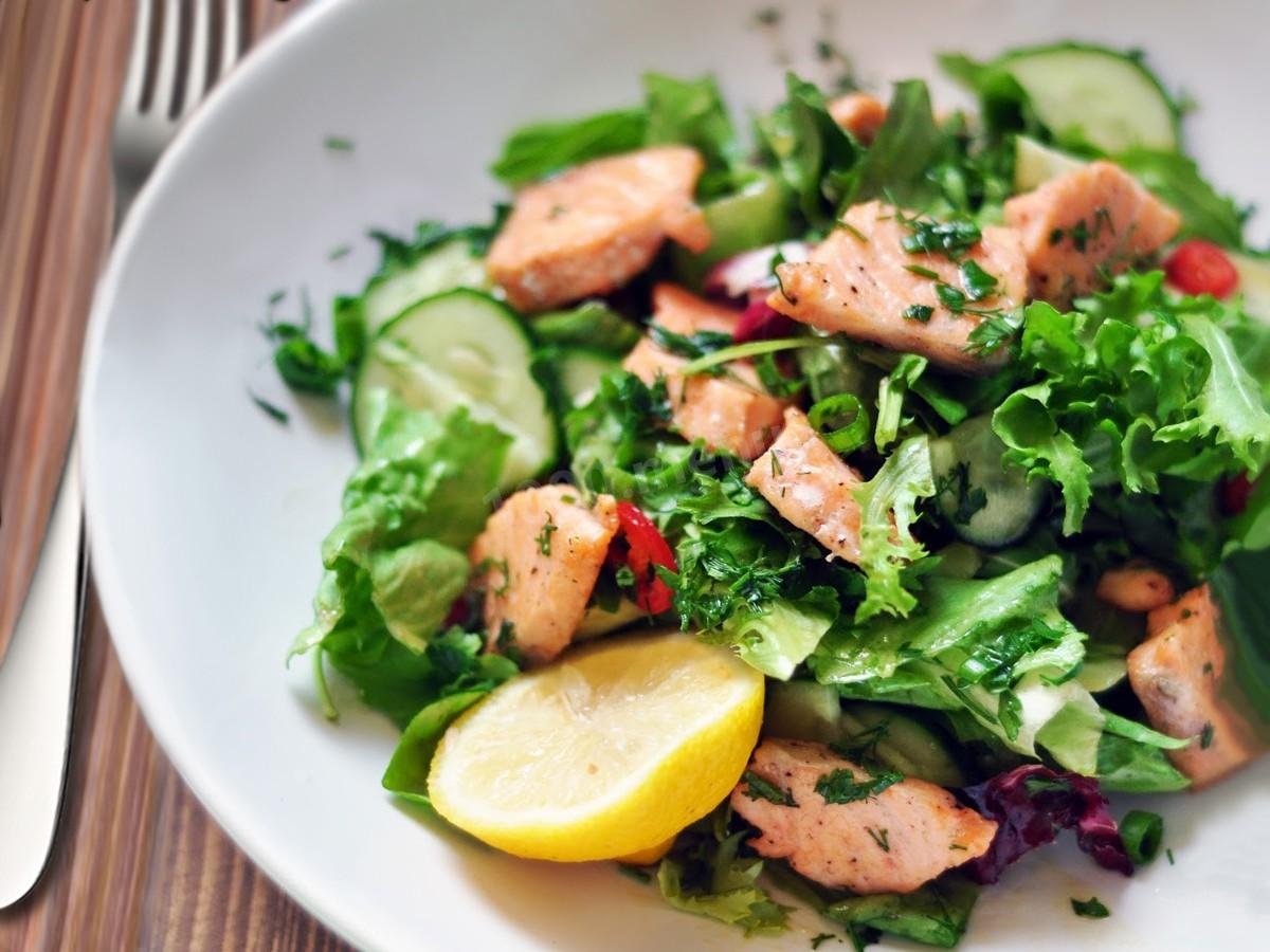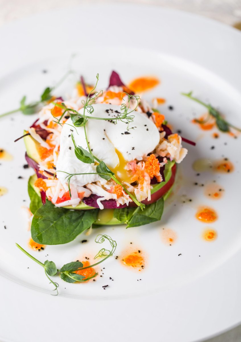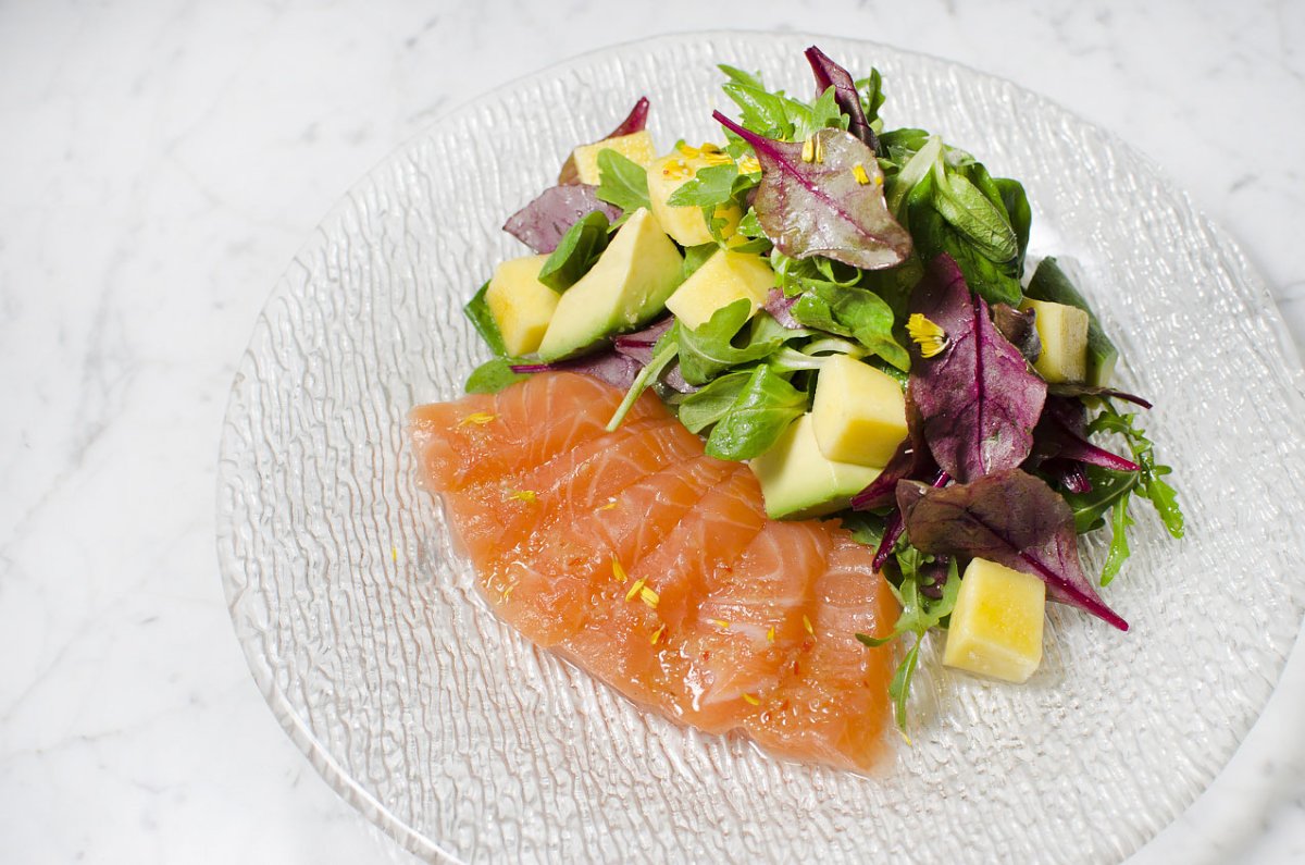 Салат с авокадо и красной рыбой и огурцом и яйцом