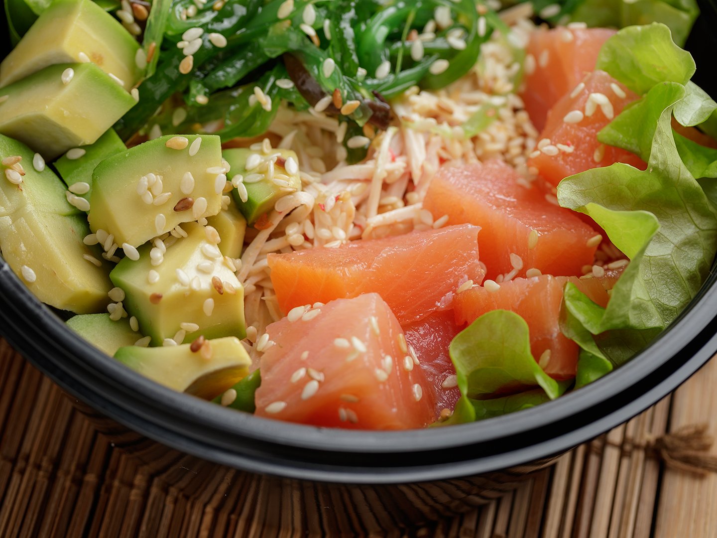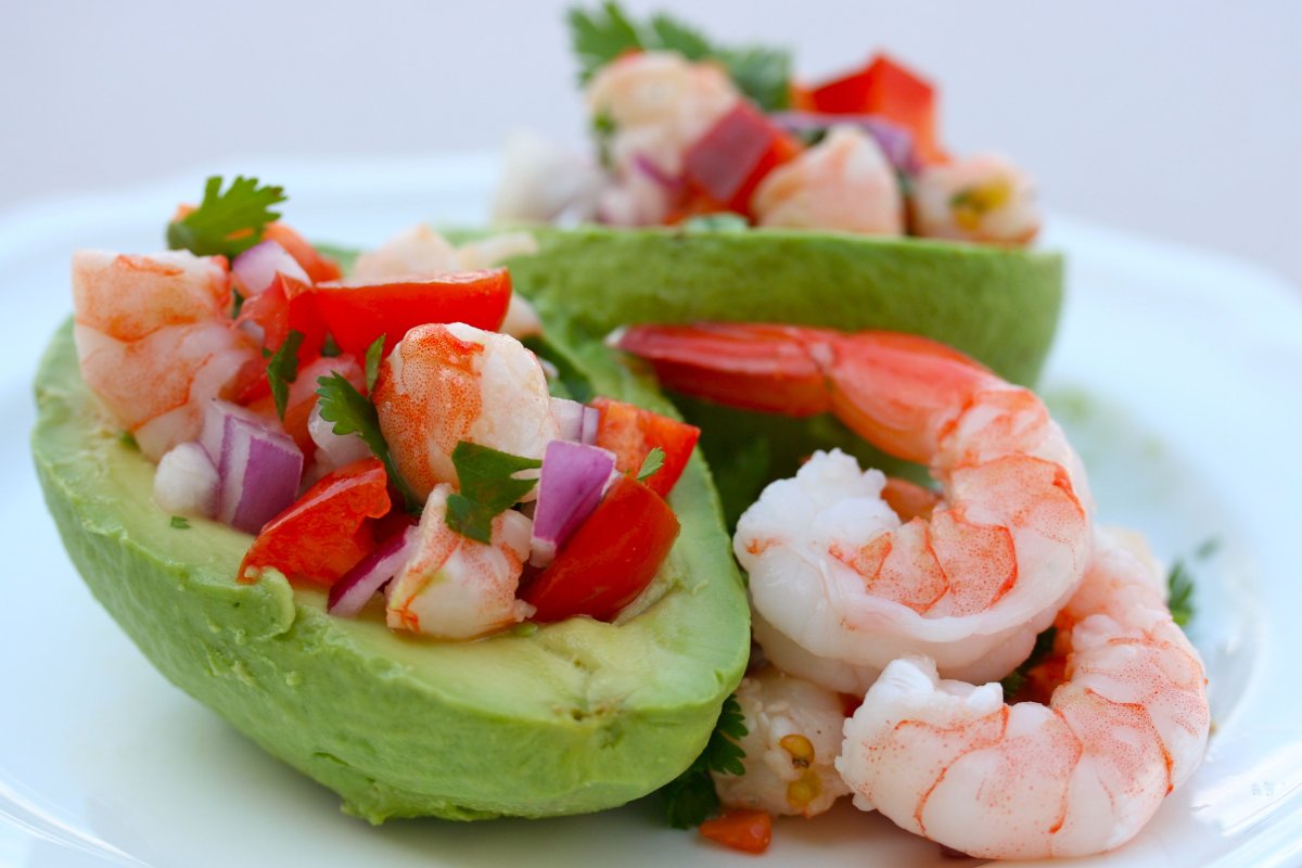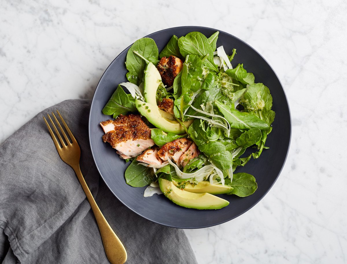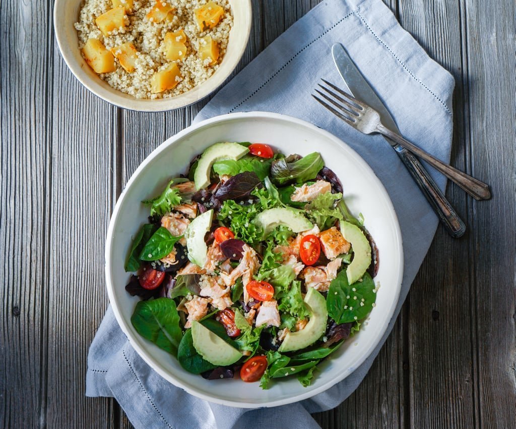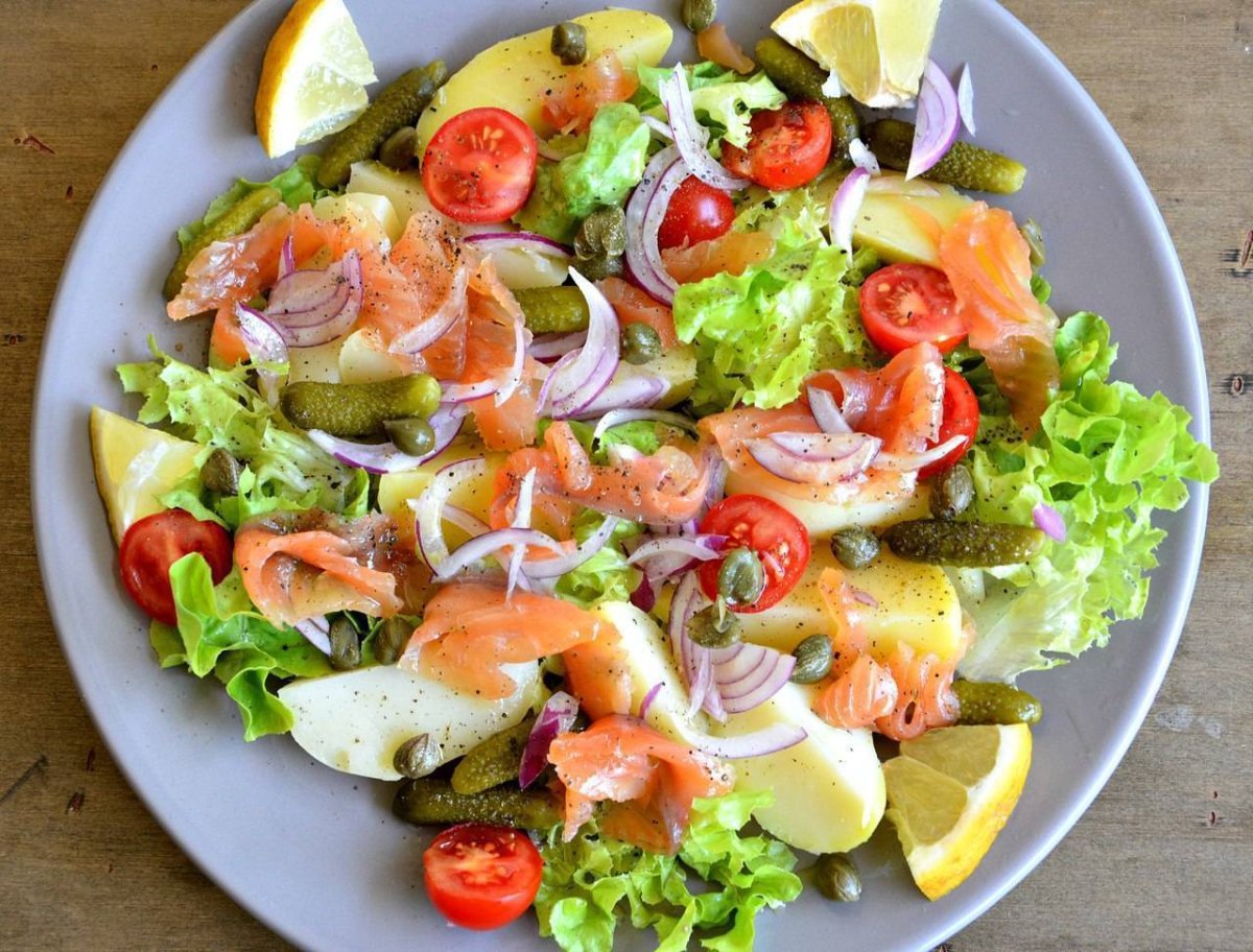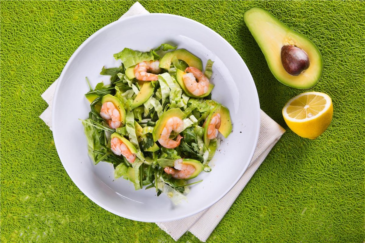 Салат с авокадо и красной рыбой и огурцом и яйцом