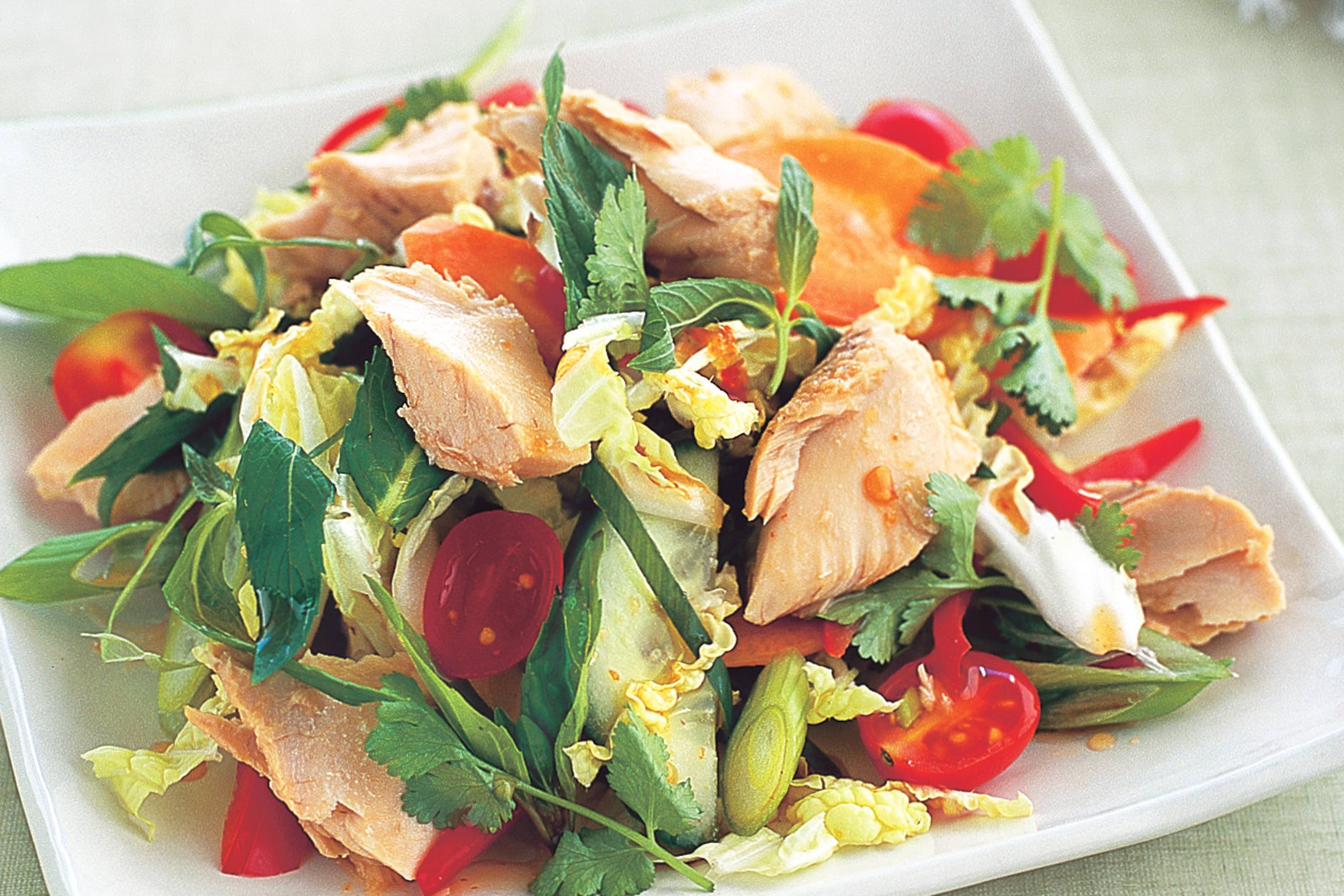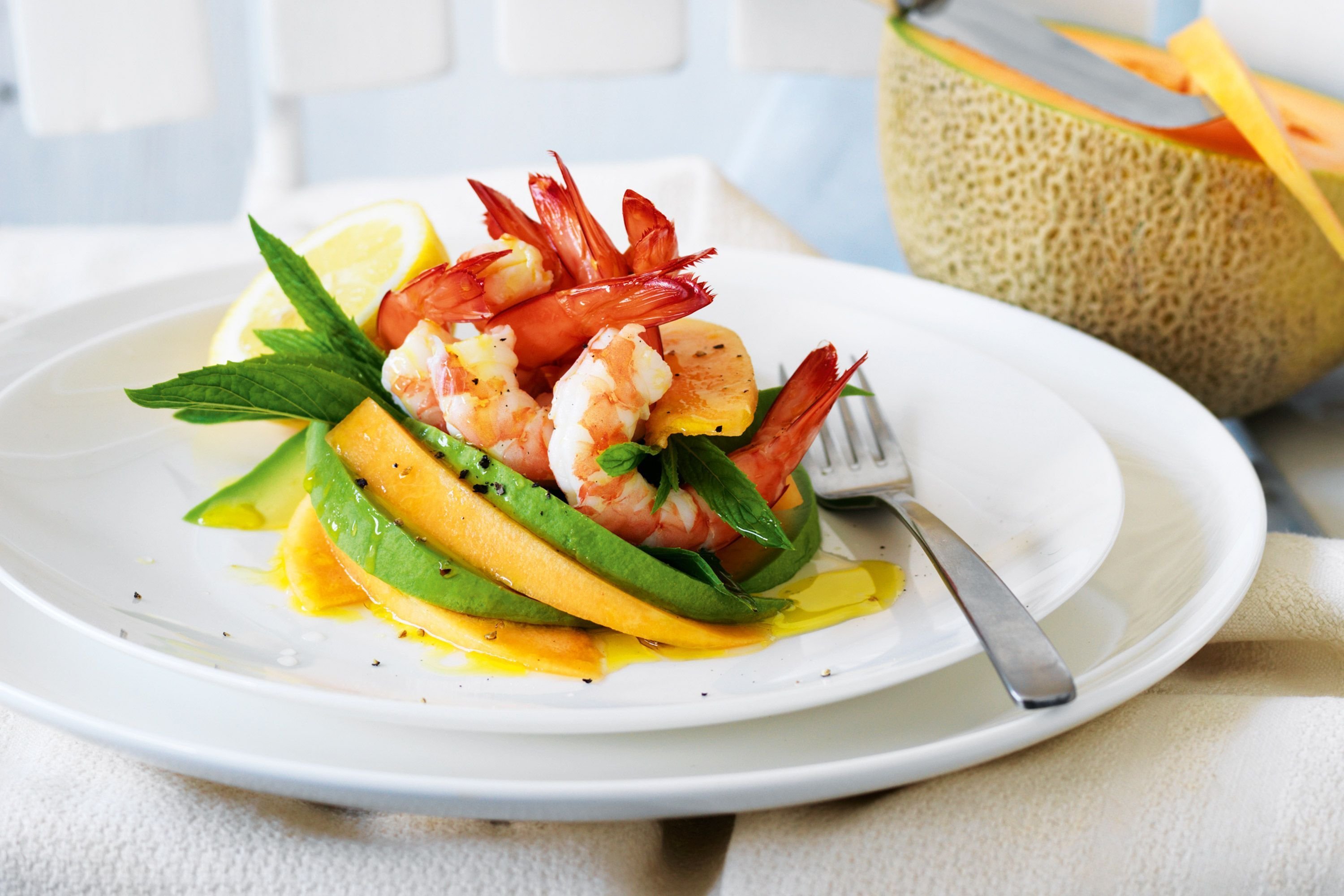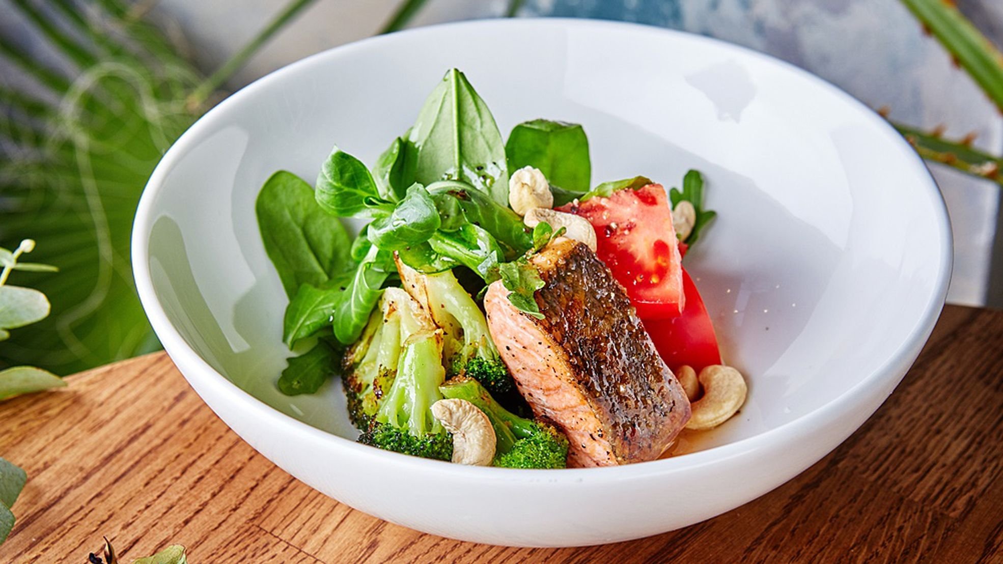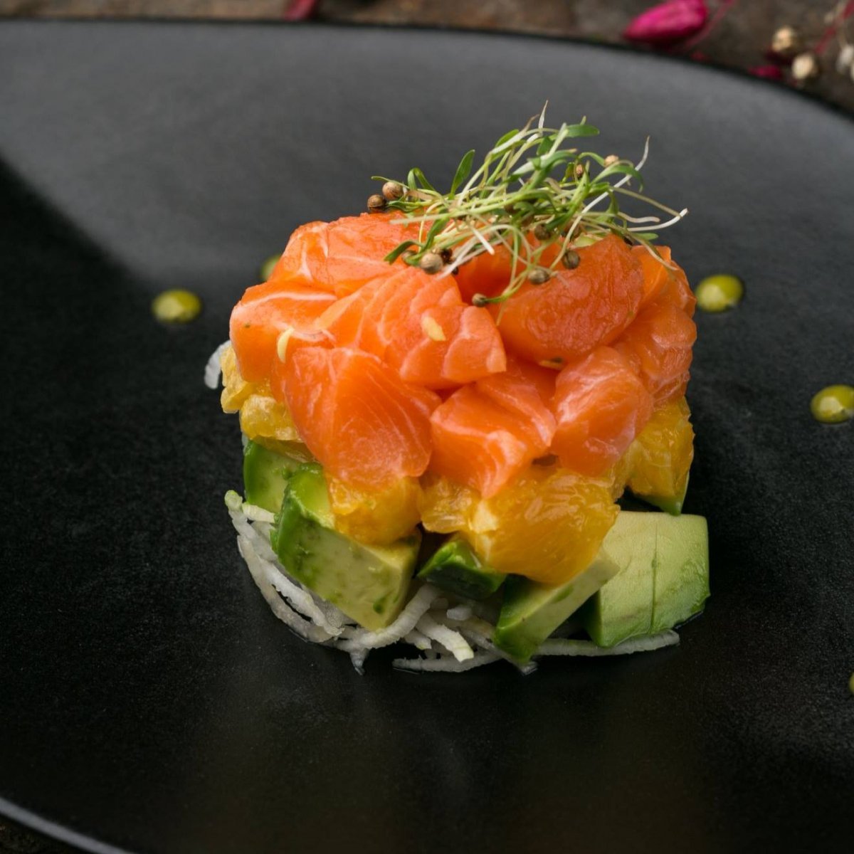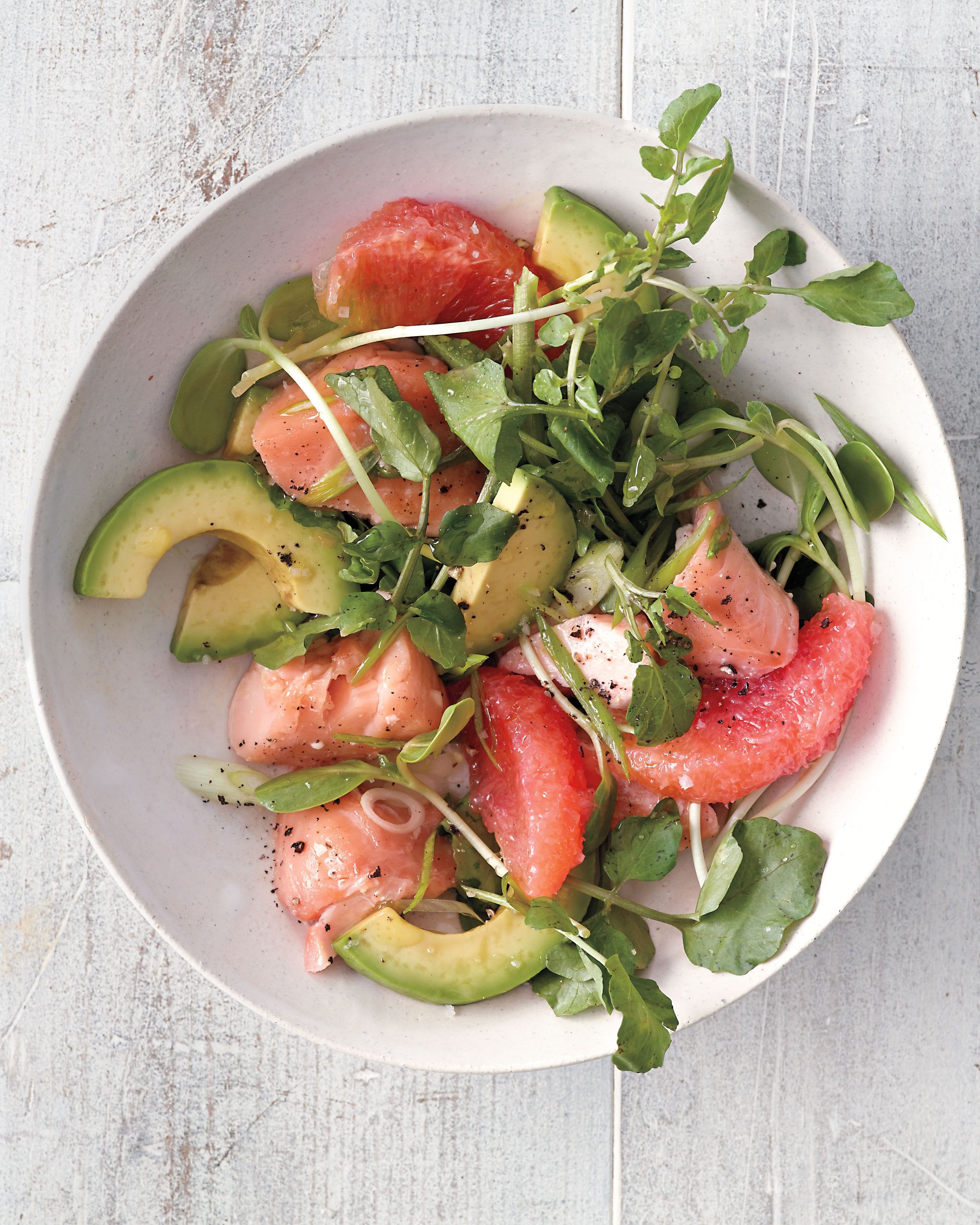 Салат с авокадо и красной рыбой и огурцом и яйцом