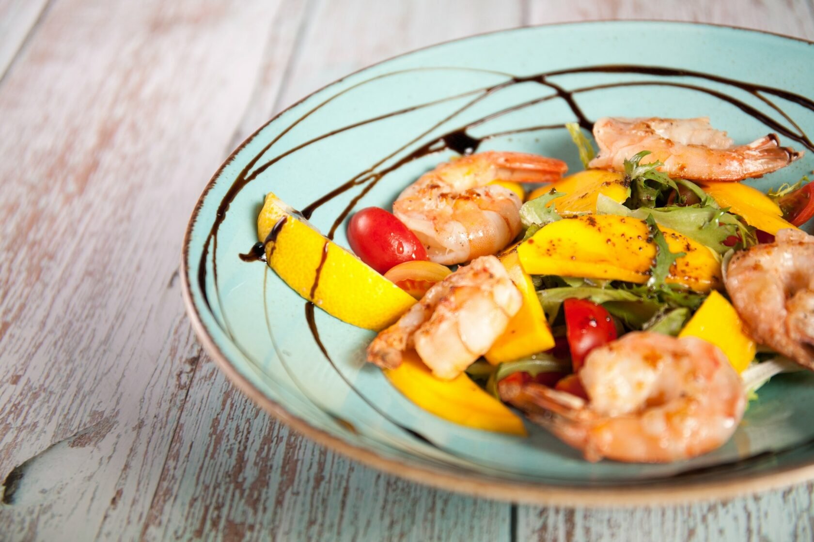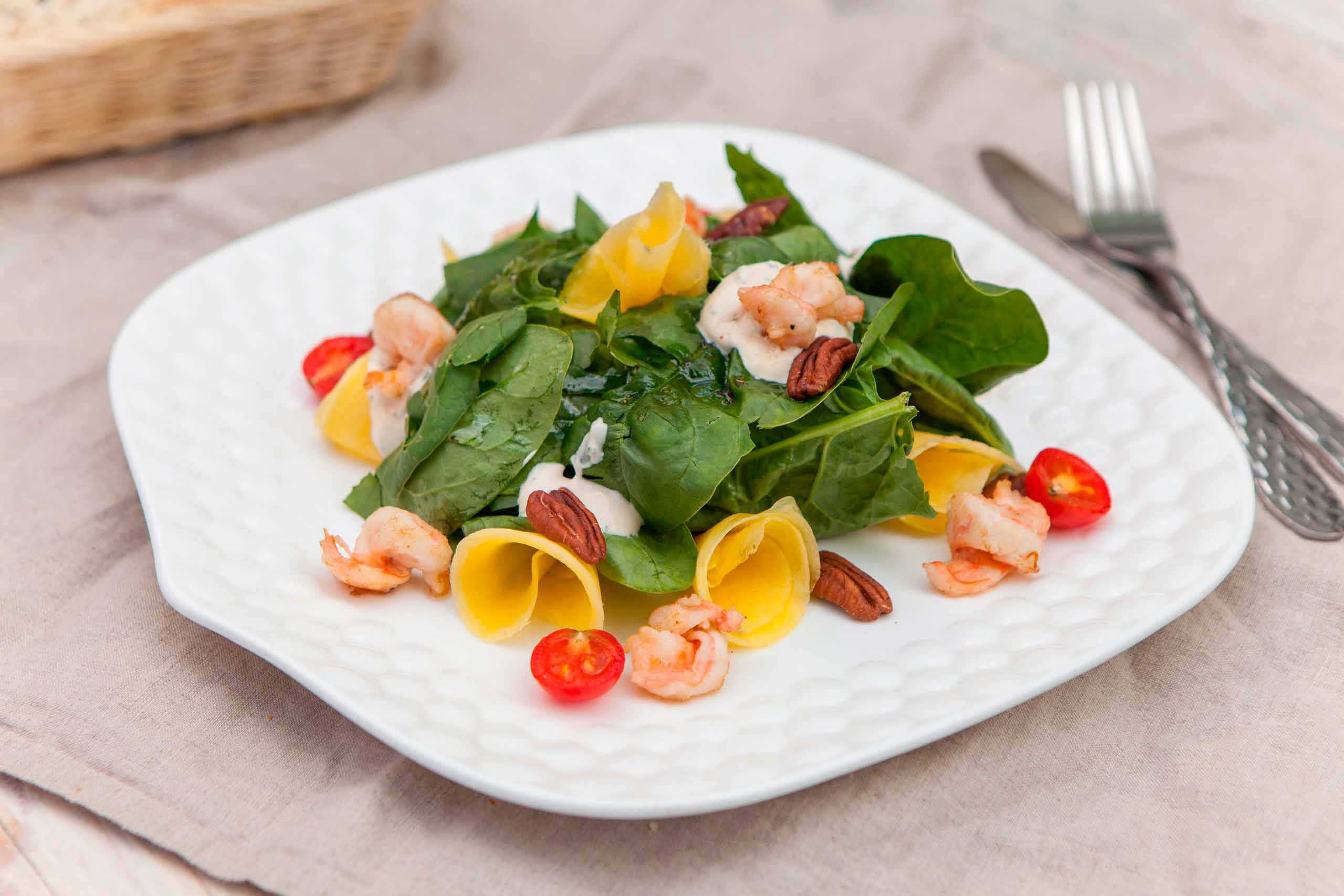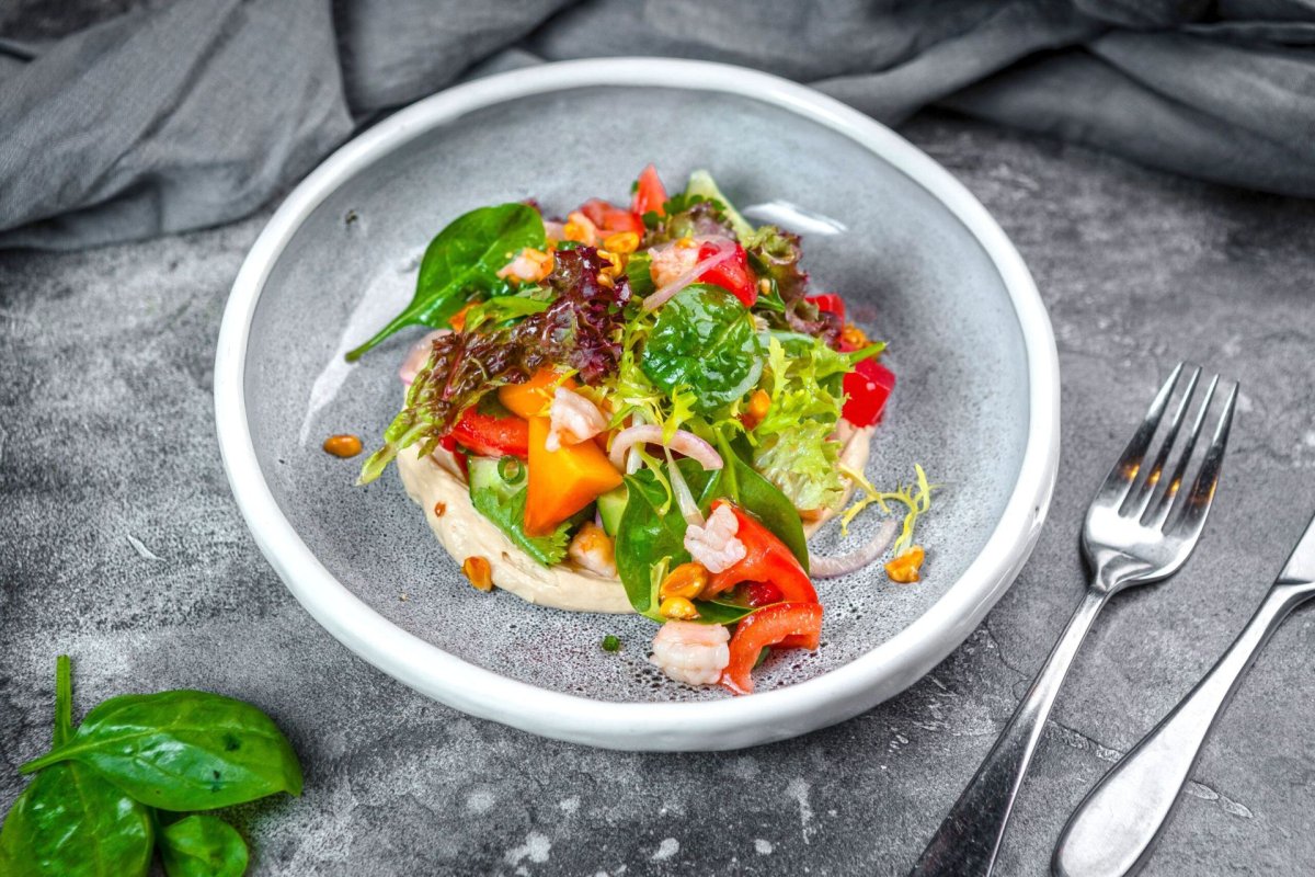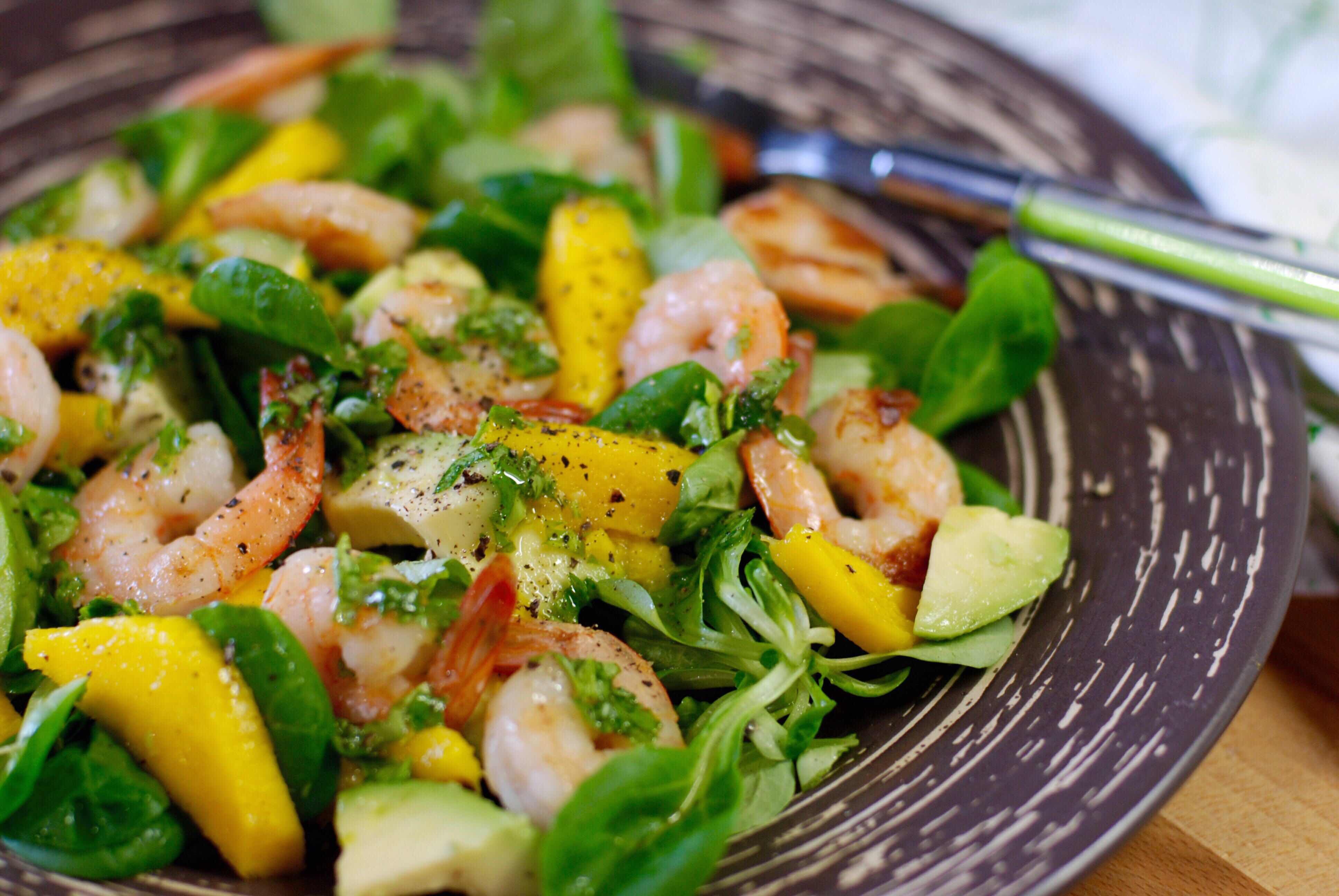 Салат с креветками и манговым соусом