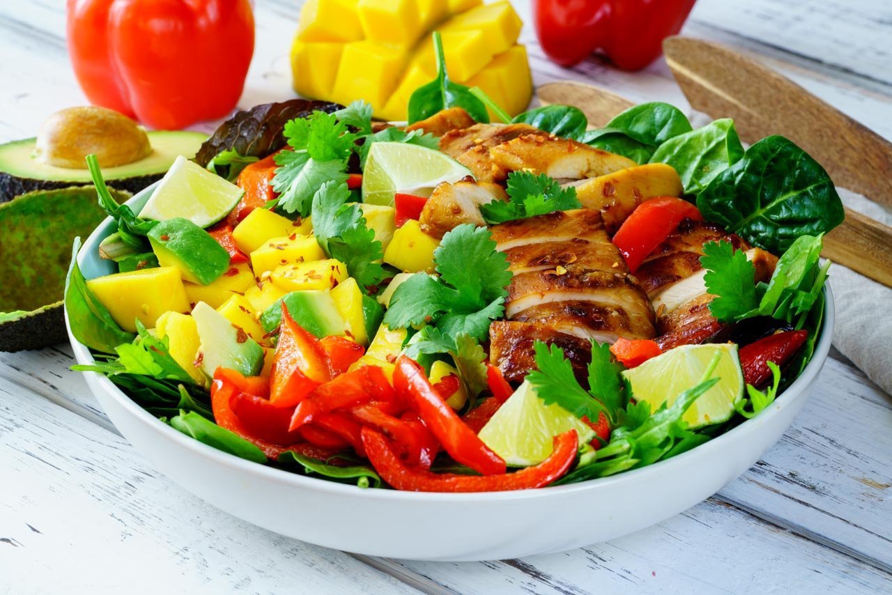 Салат с манго, авокадо и курицей