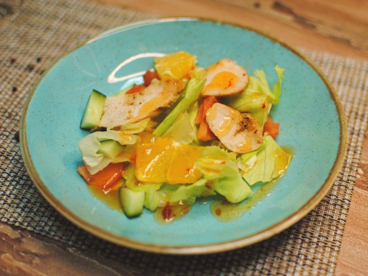 Салат с соусом манго чили