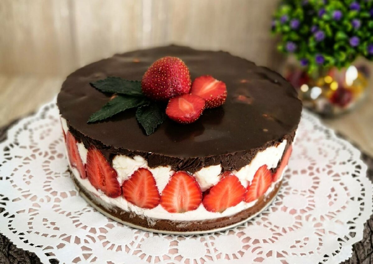 Торт с клубникой и шоколадом