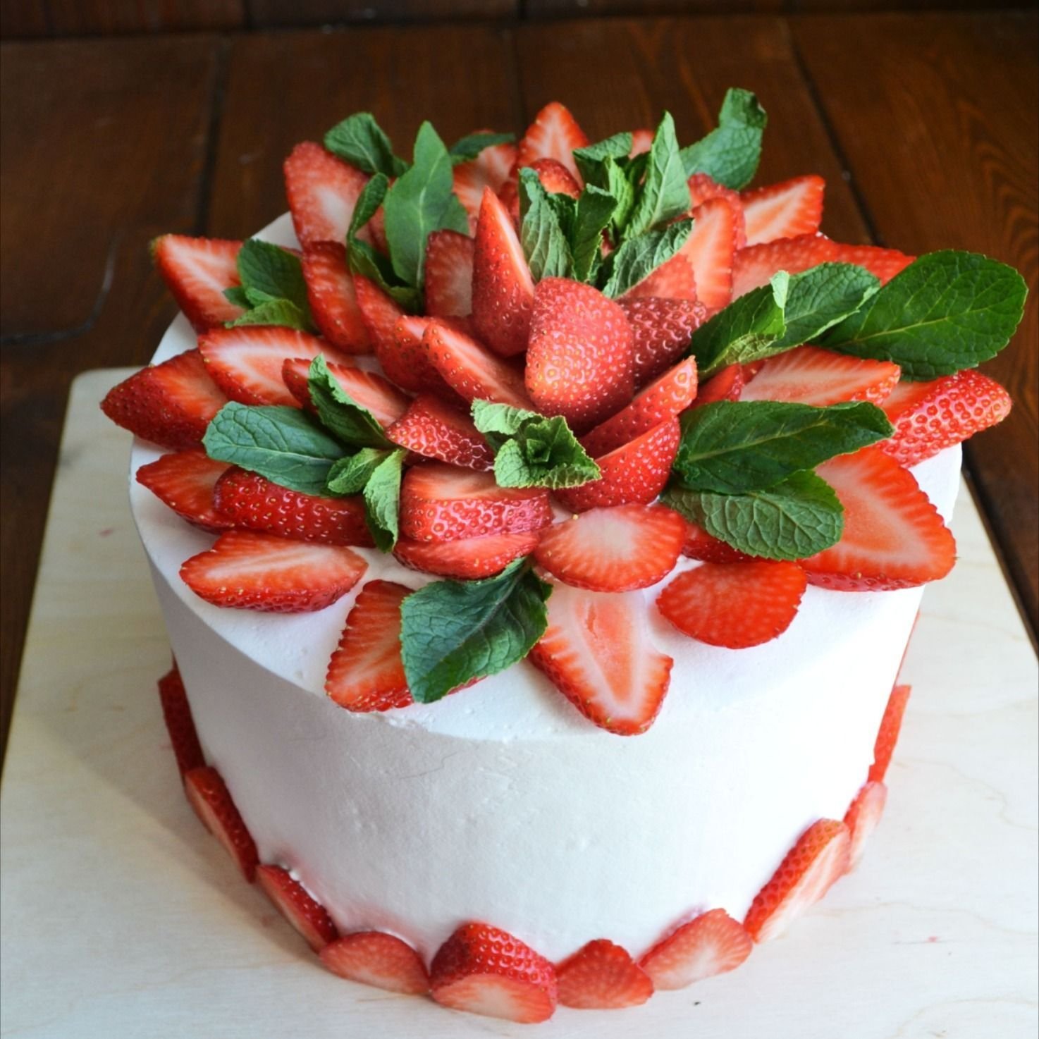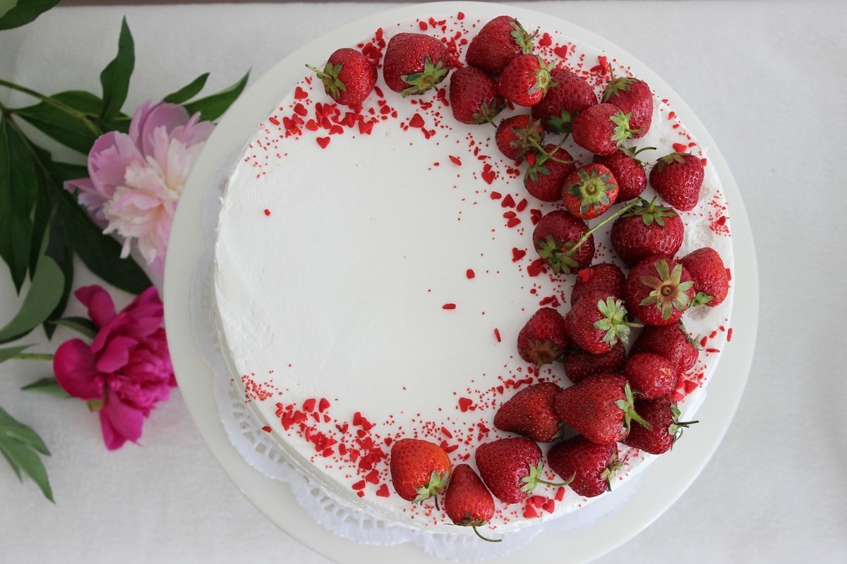 Украсить круглый торт клубникой