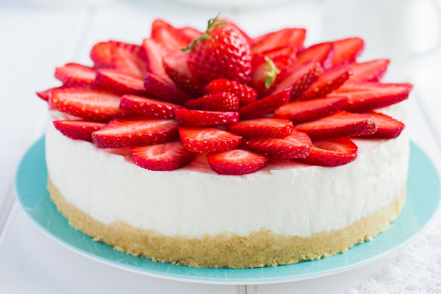 Украшение чизкейка клубникой