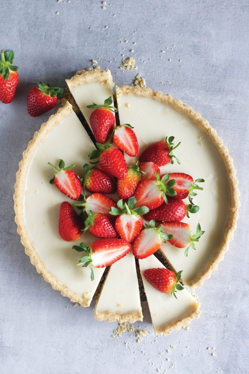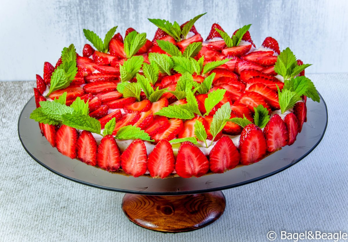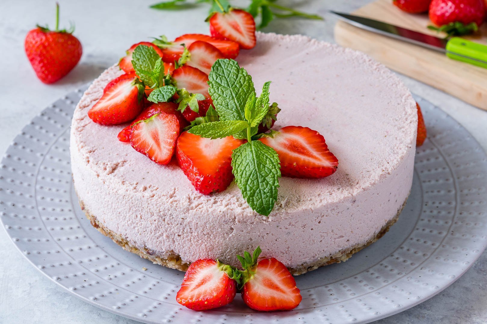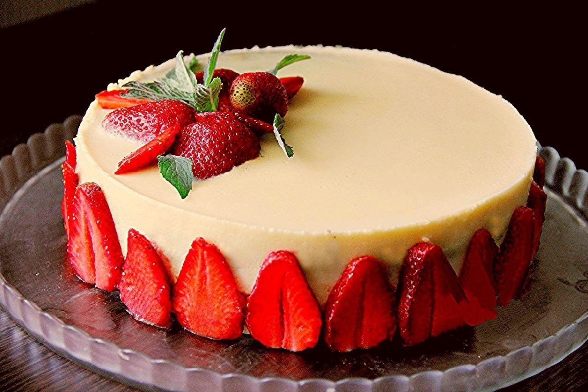 Украсить чизкейк клубникой и мятой