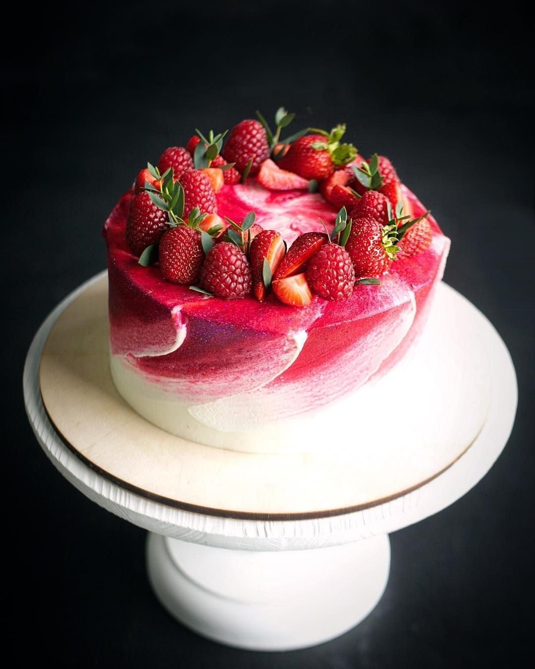 Торт украшенный клубникой и черешней