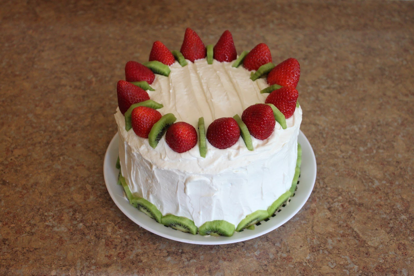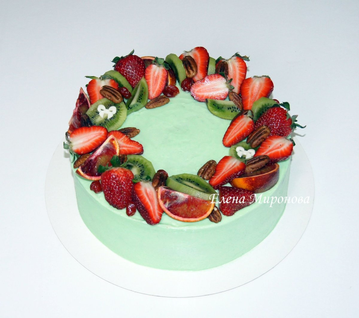 Украшение торта клубникой и киви