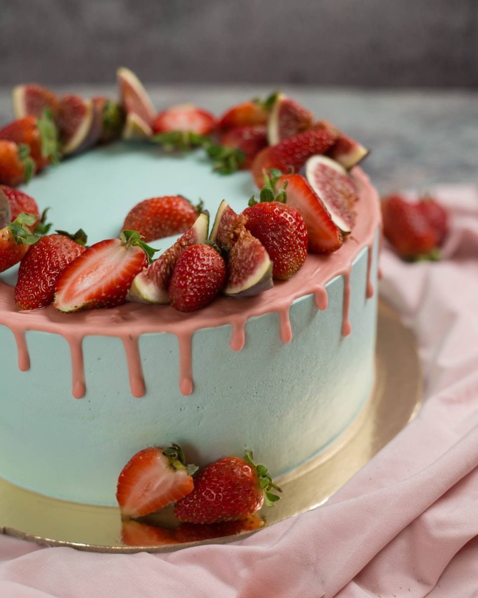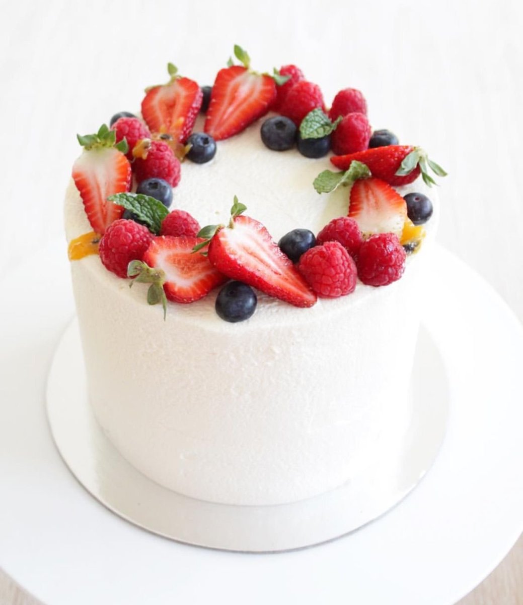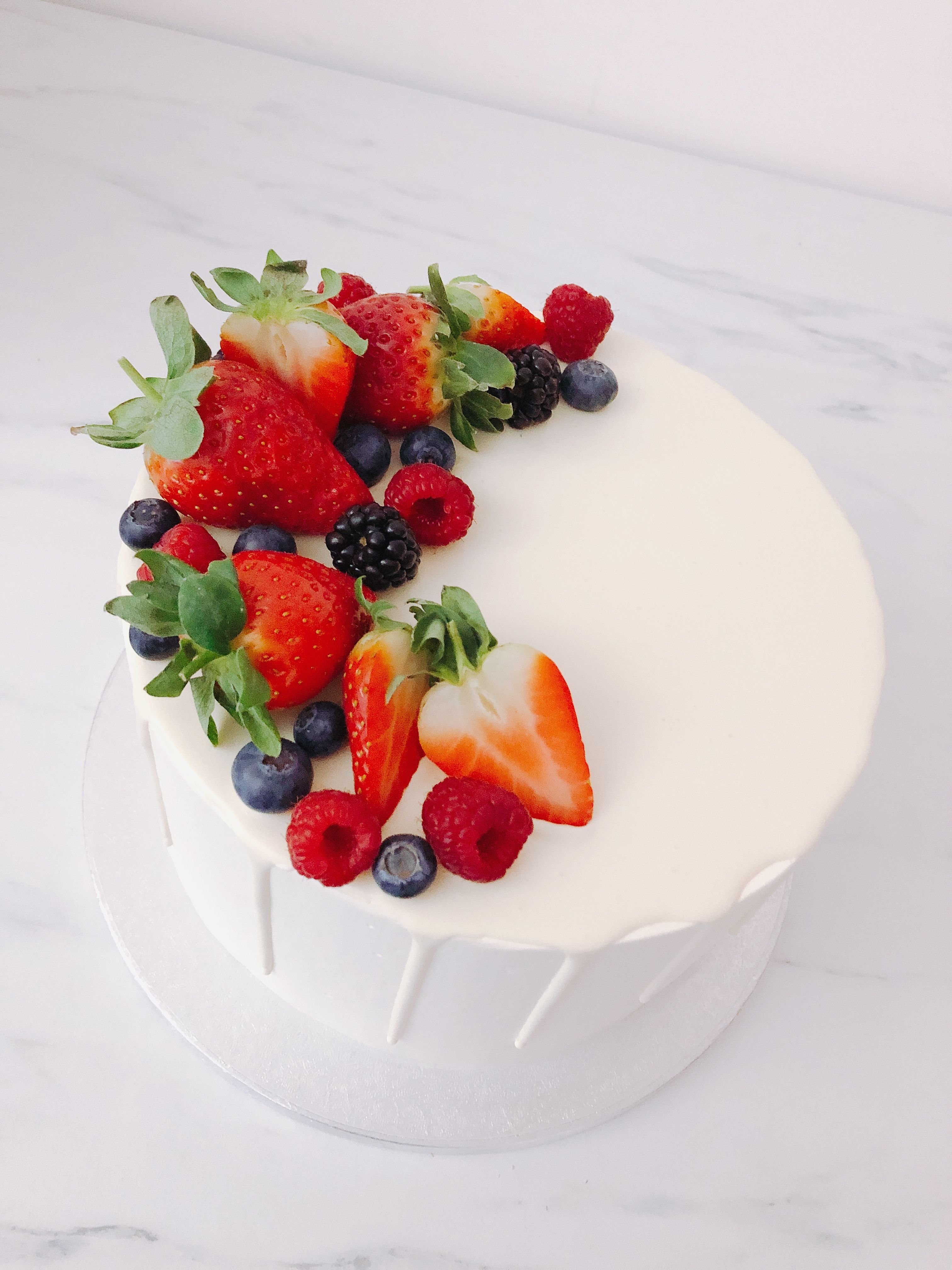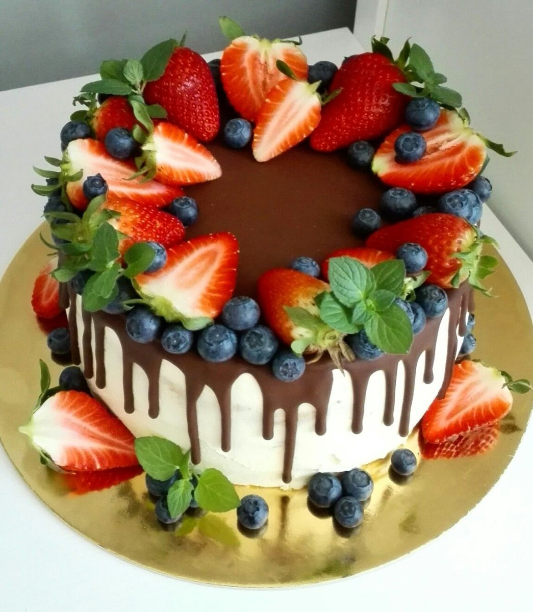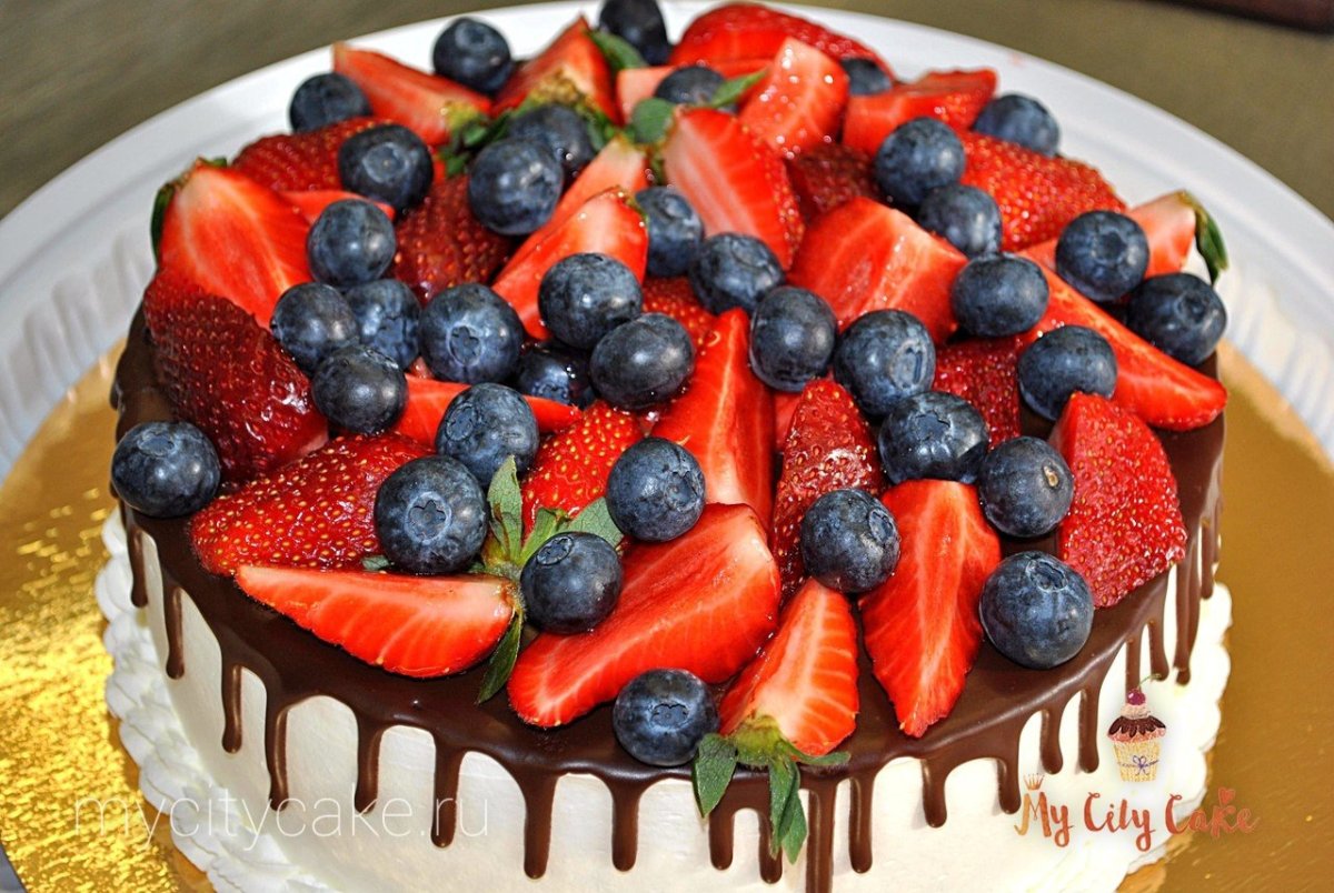 Украсить торт клубникой и голубикой