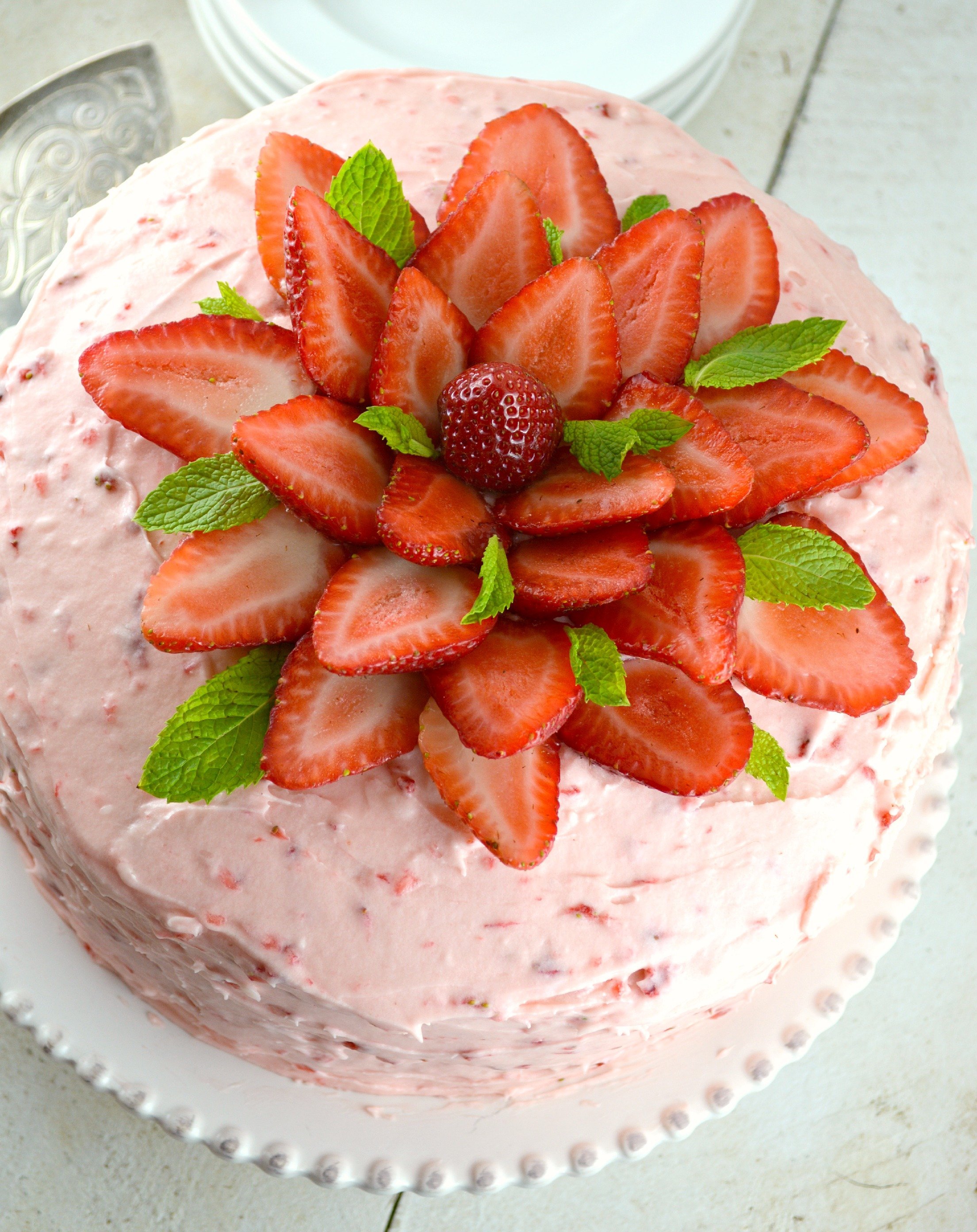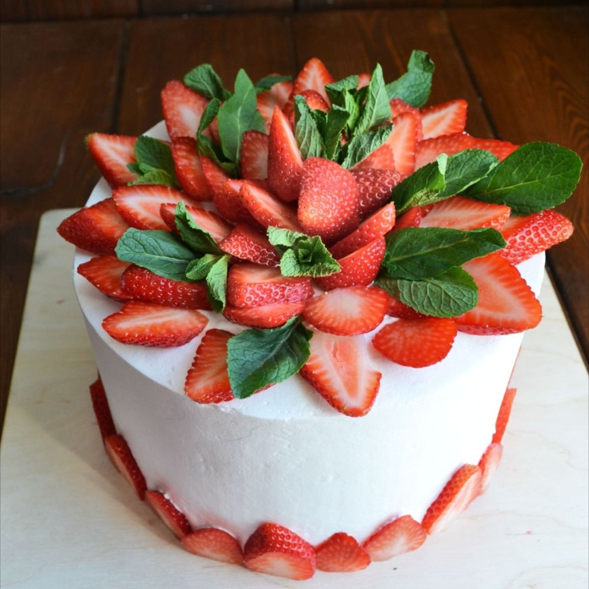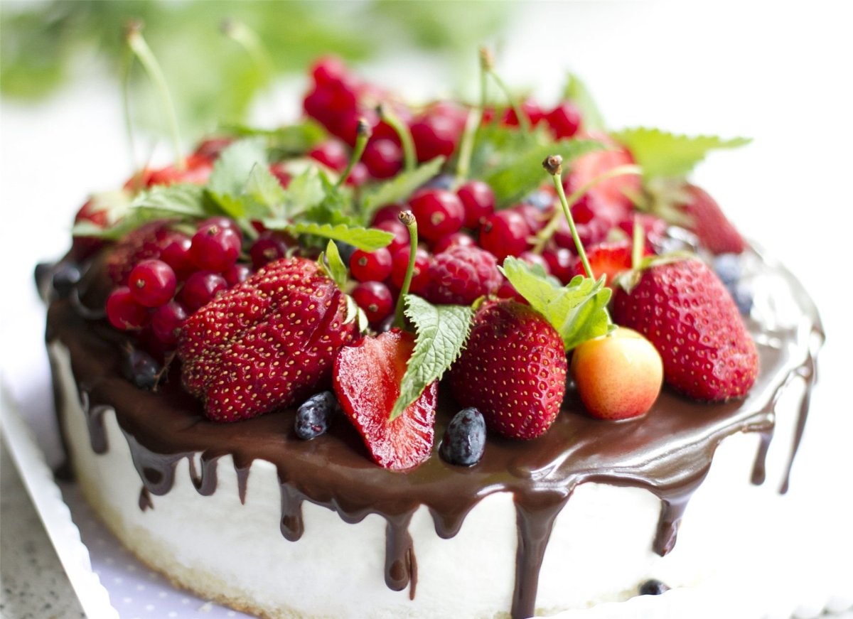 Украсить торт клубникой и мятой
