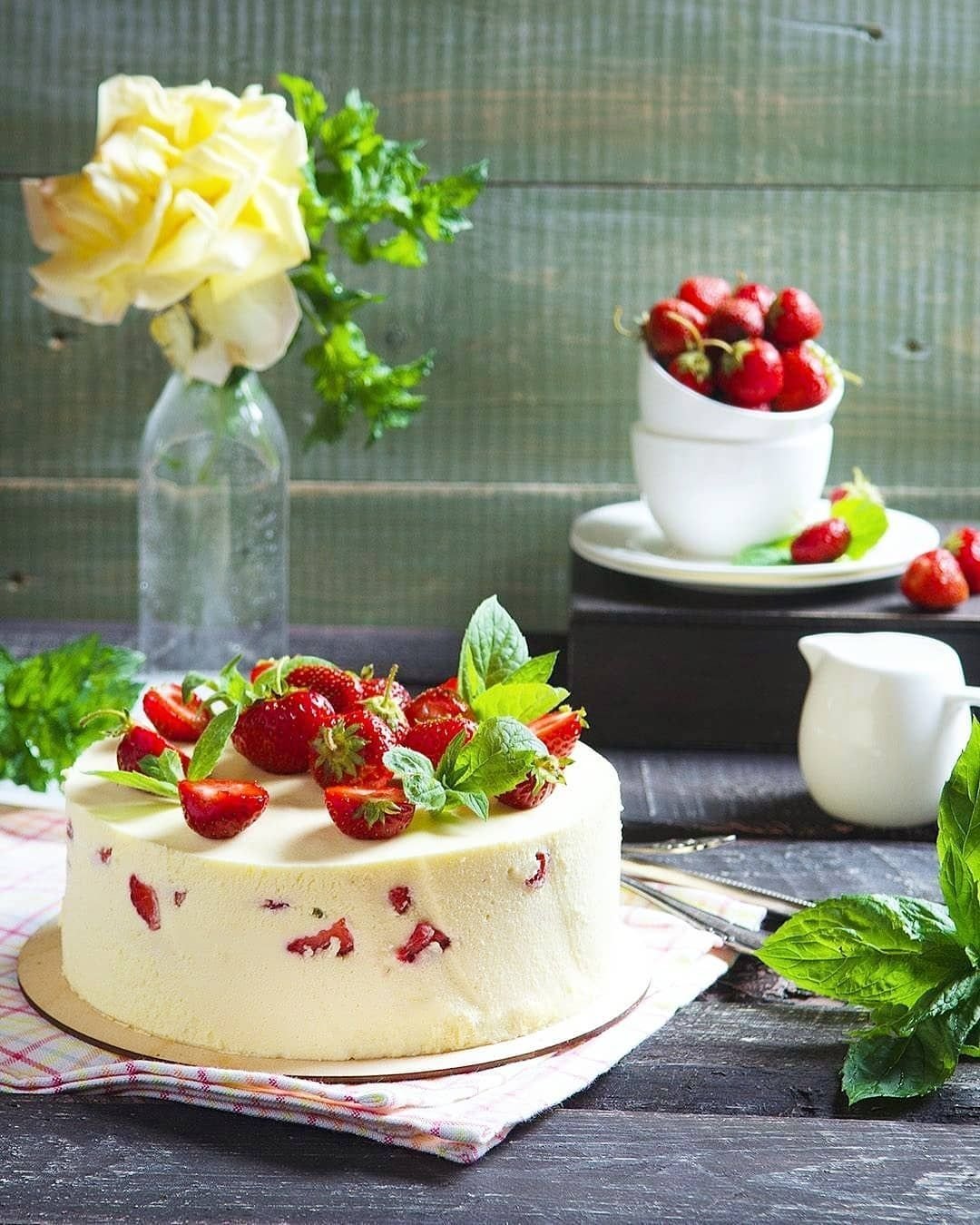 Муссовый торт клубника ваниль базилик