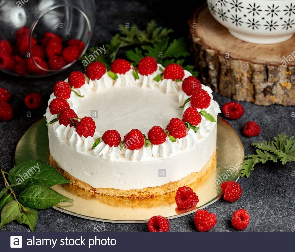 Торт украшенный малиной