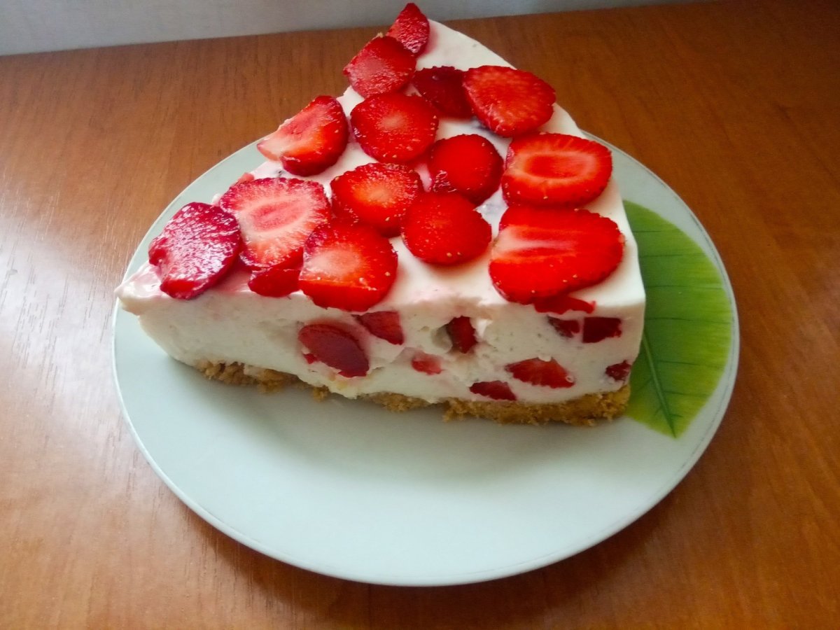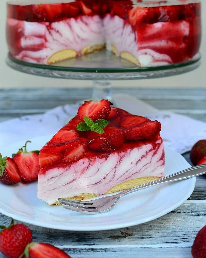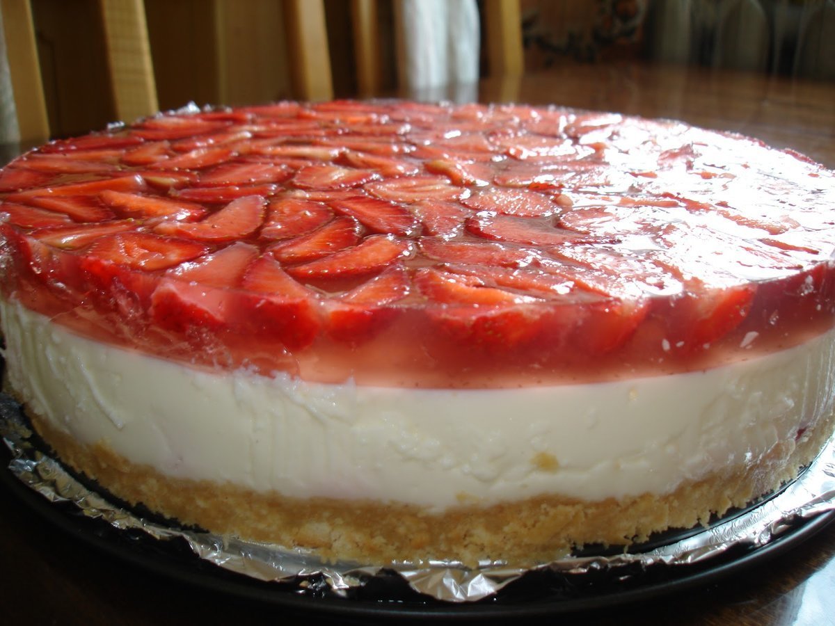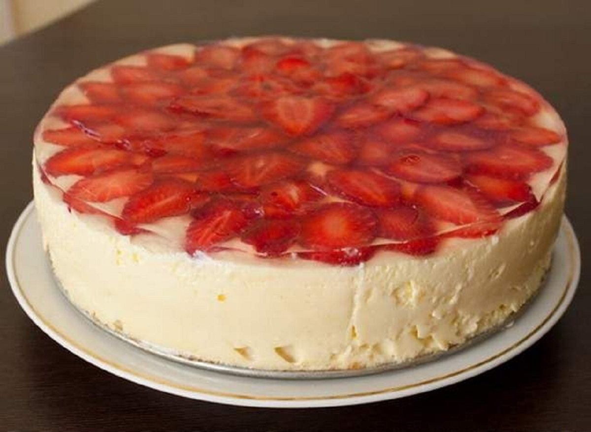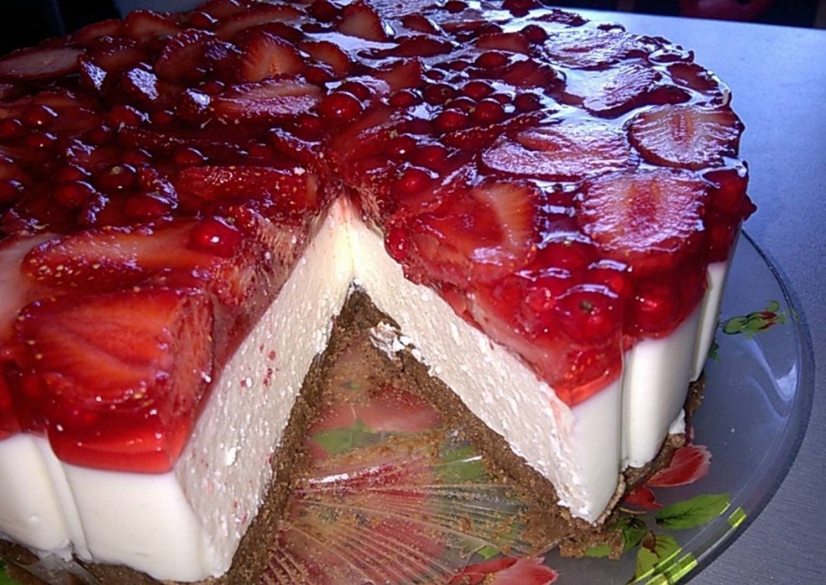 Торт творожный с клубникой и желатином