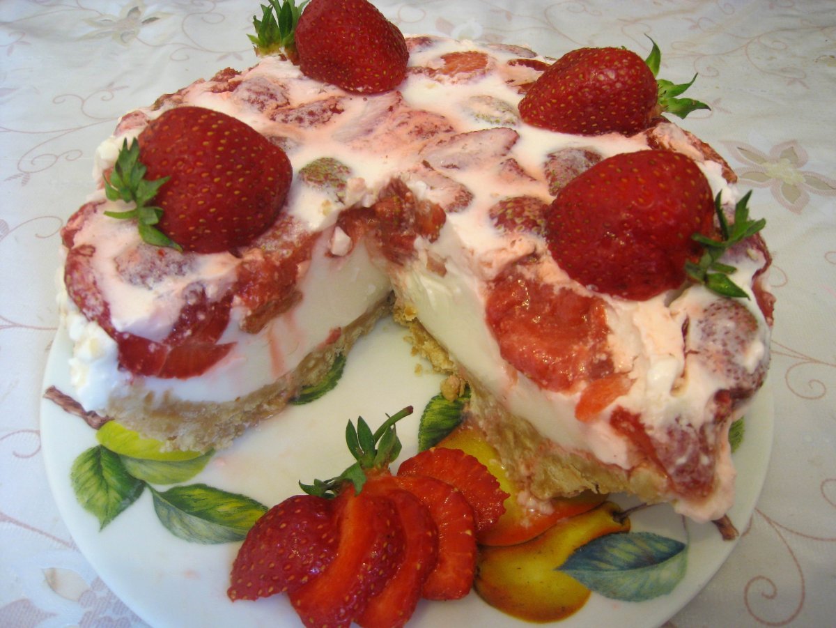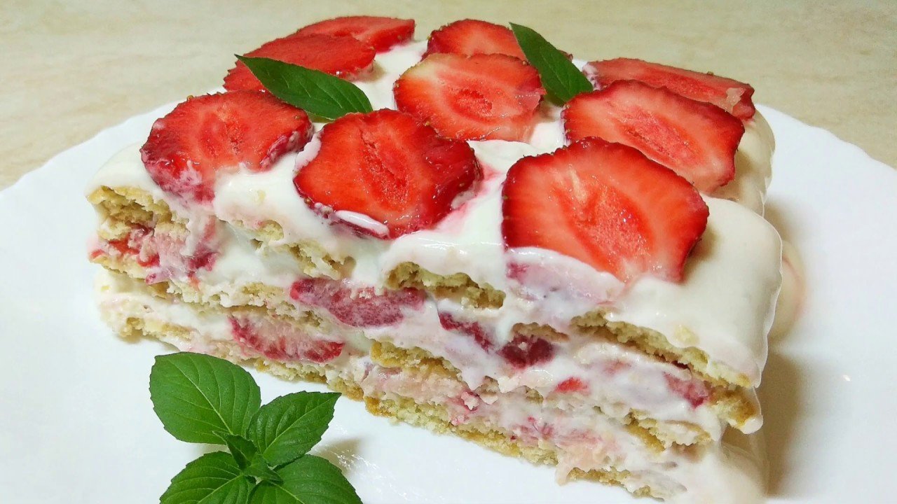 Торт с клубникой без выпечки