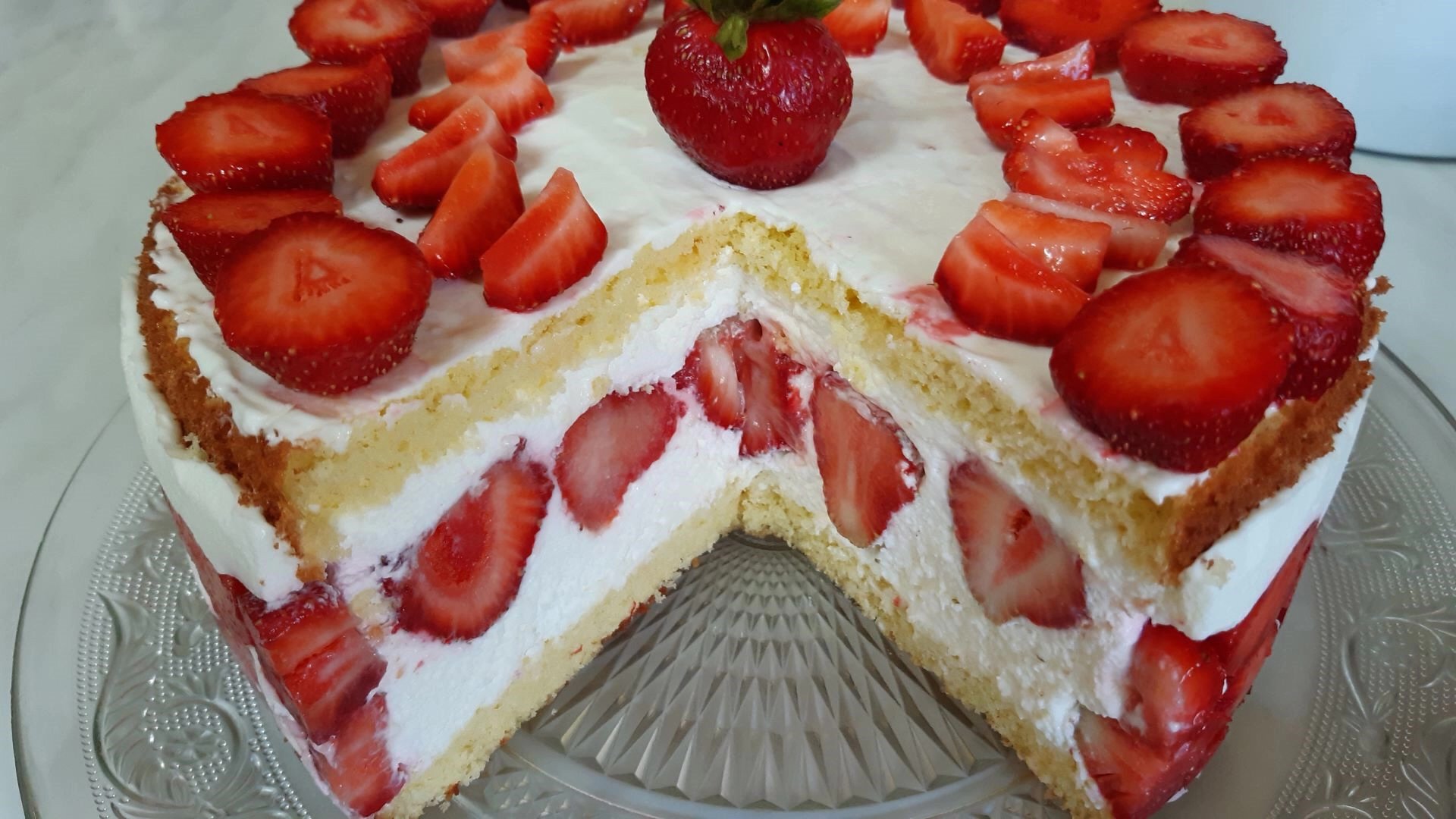 Торт с клубникой и сметаной