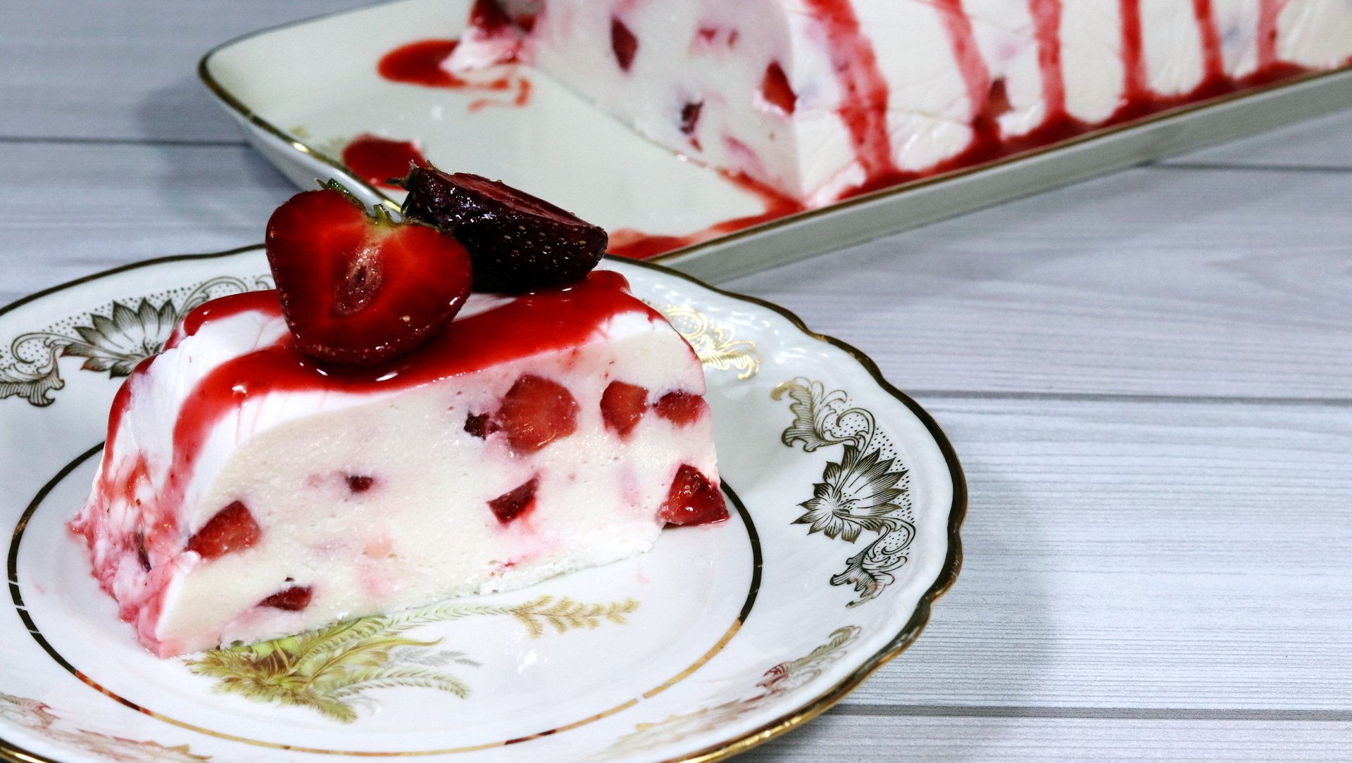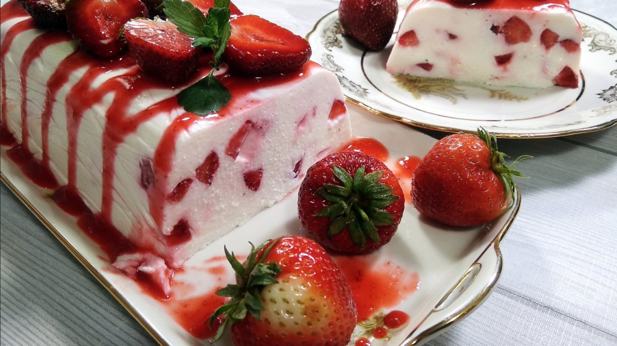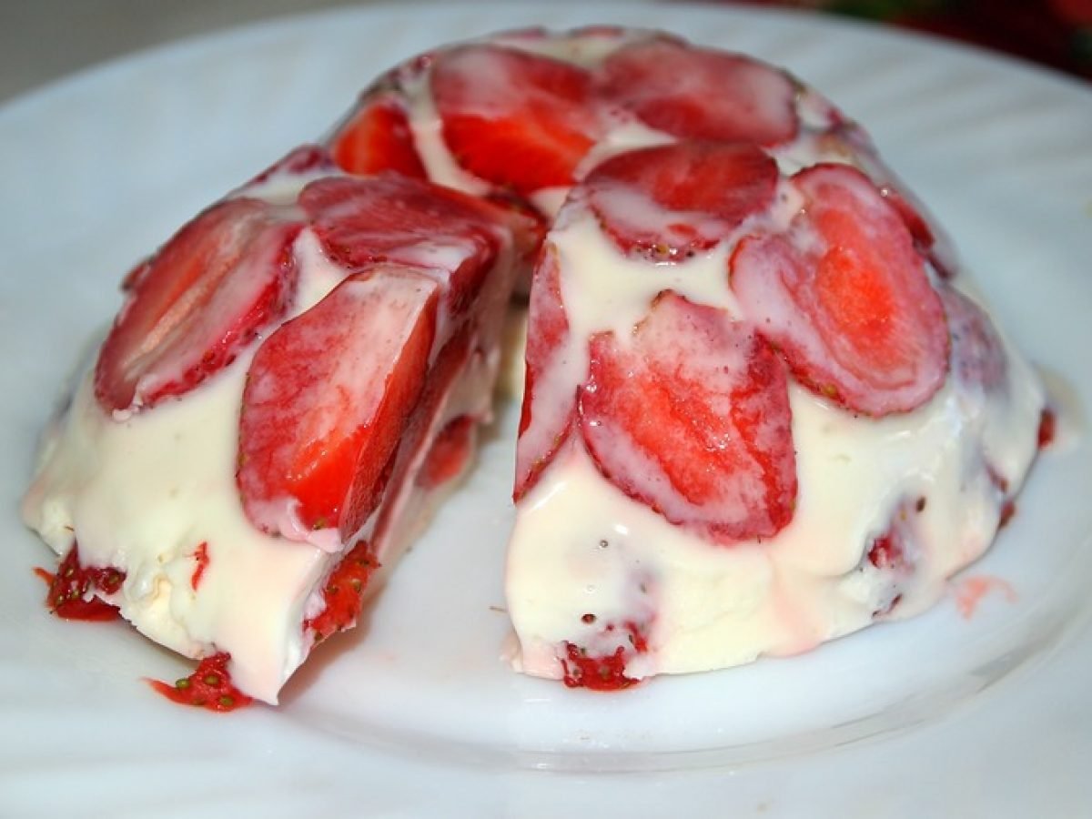 Сметанный десерт с желатином и клубникой