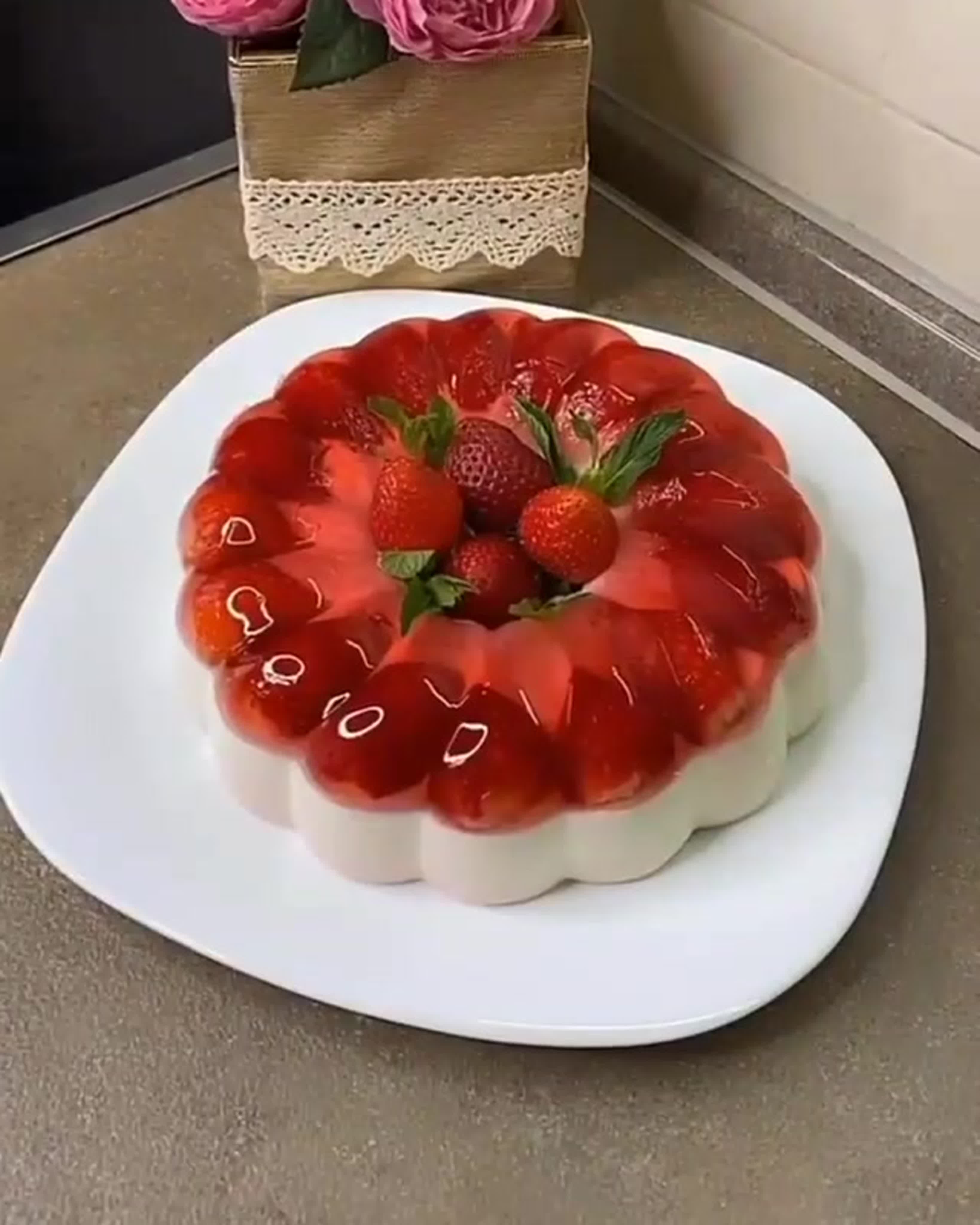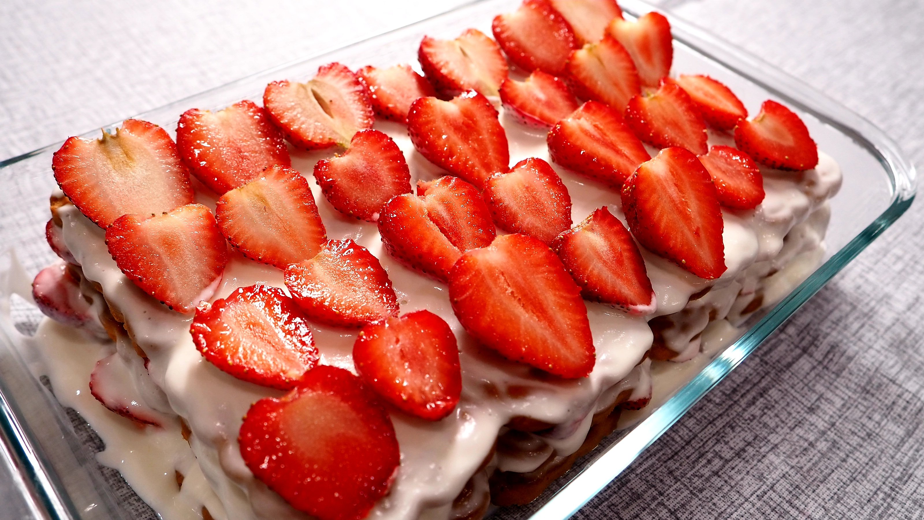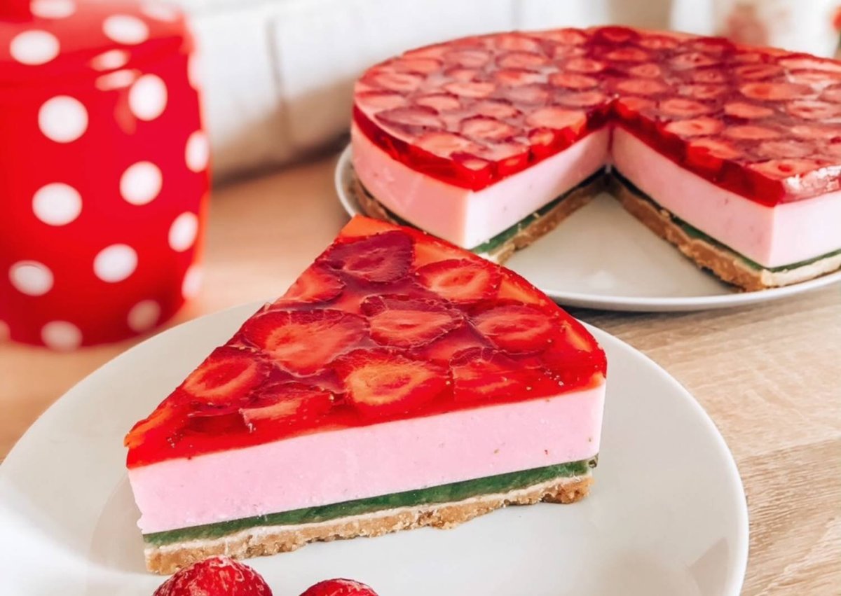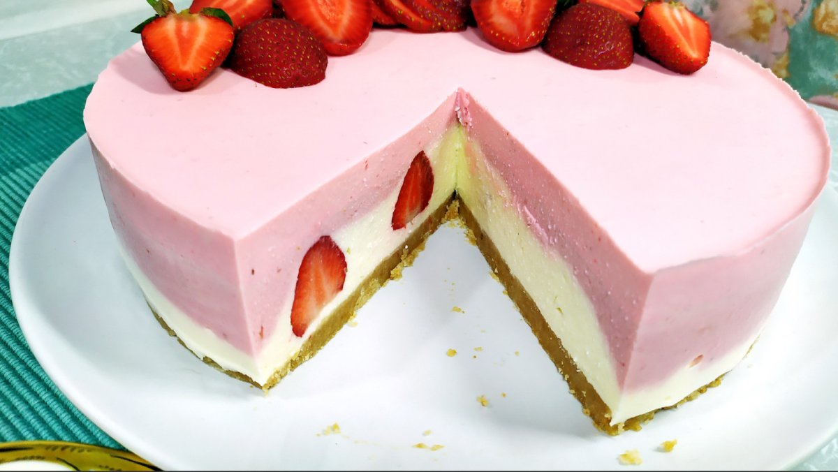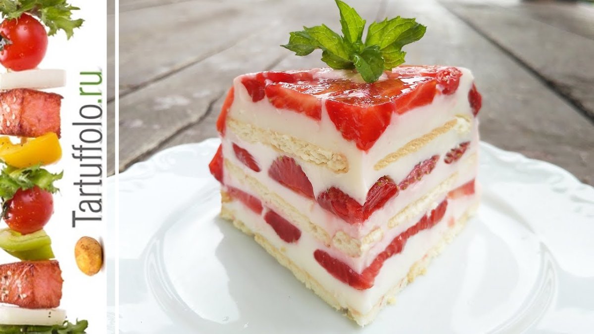 Торт без выпечки с клубникой и желатином