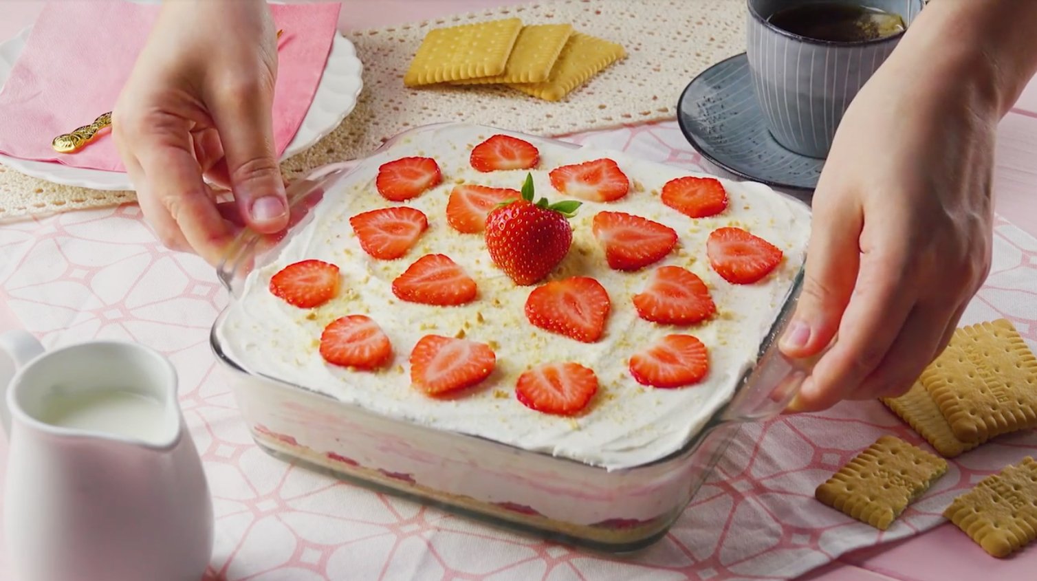 Творожно клубничный торт без выпечки