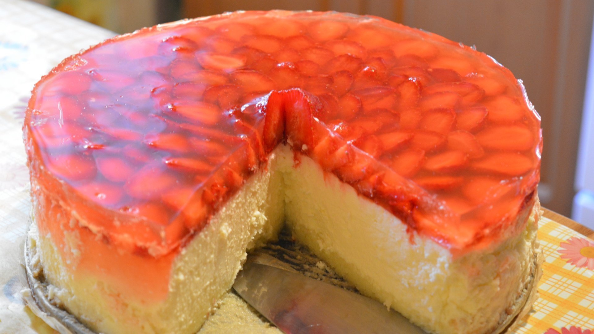 Чизкейк с клубникой и желе