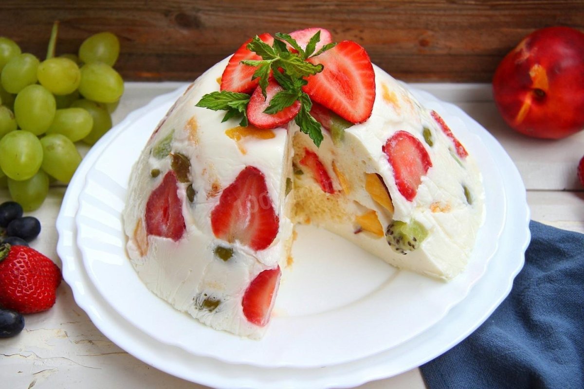 Торт без выпечки с желатином и фруктами