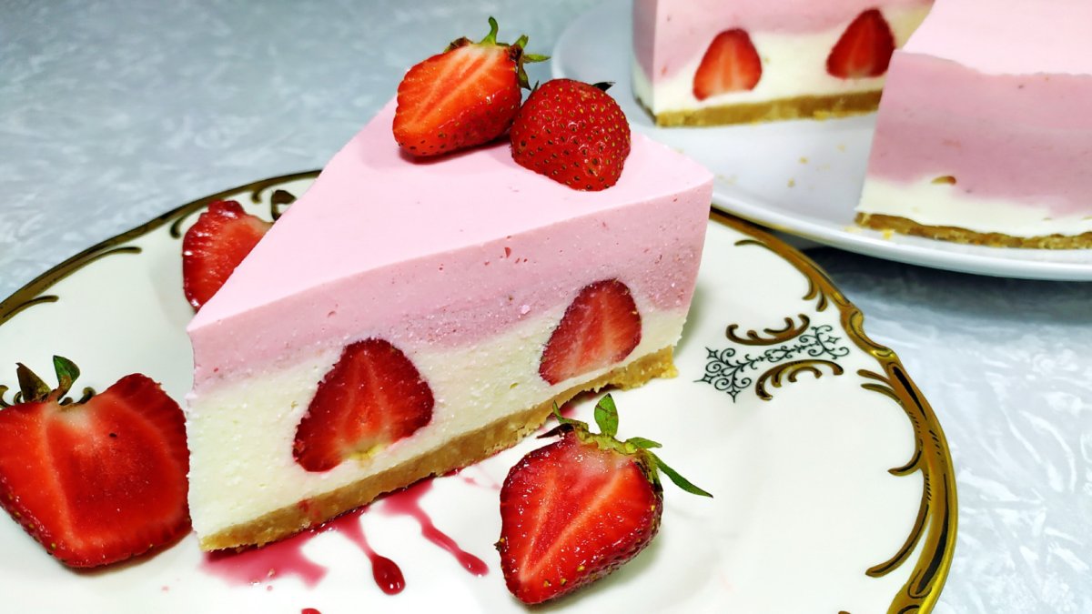 Торт муссовый клубничный чизкейк