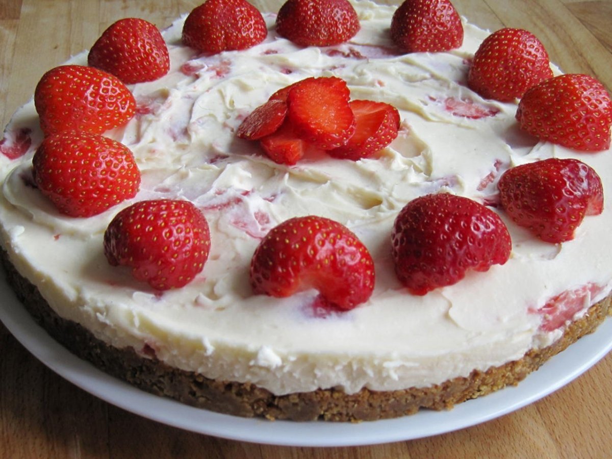 Творожный торт с клубникой без выпечки