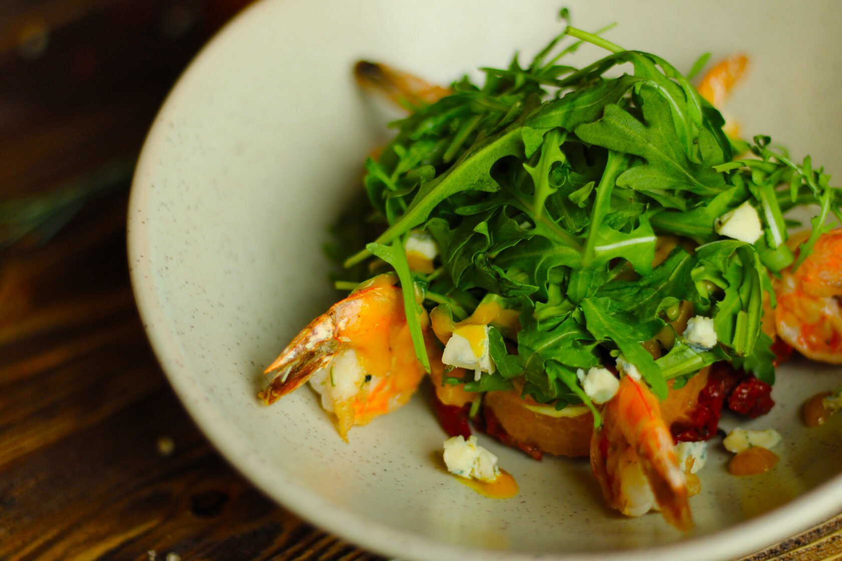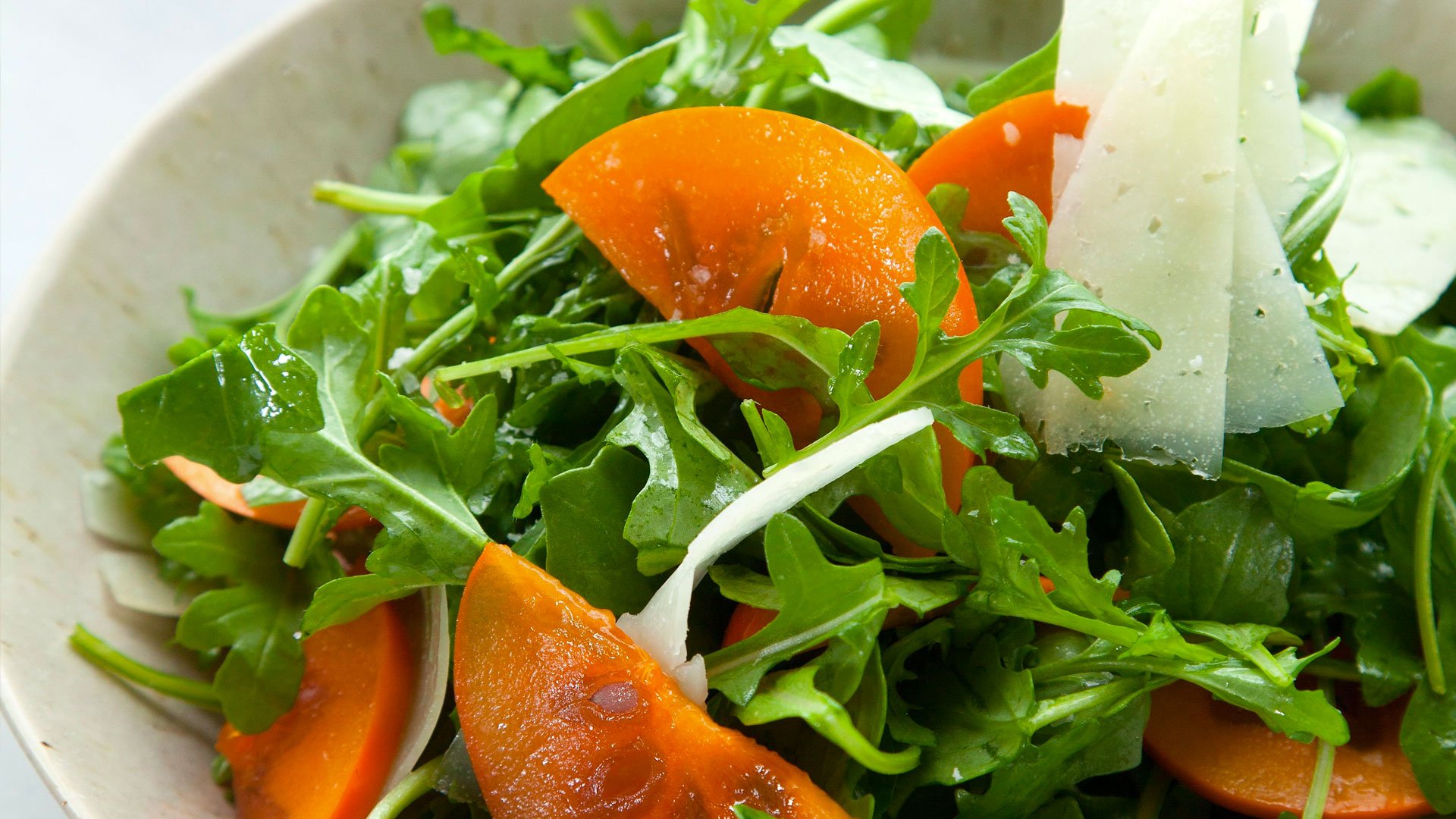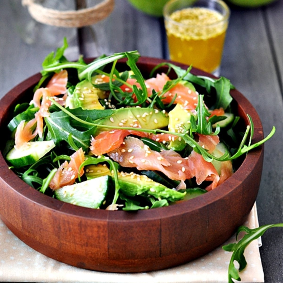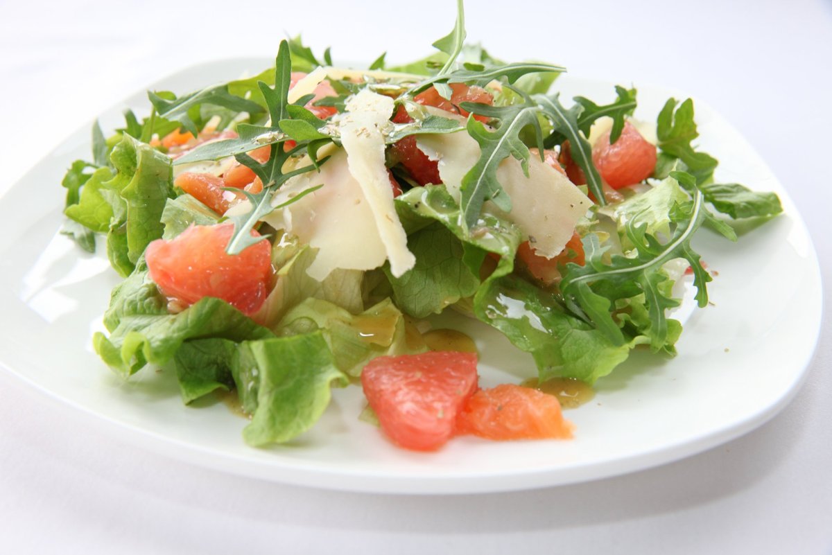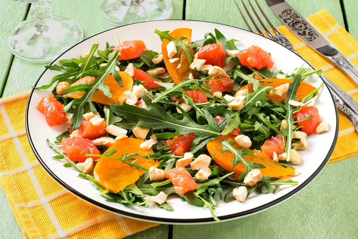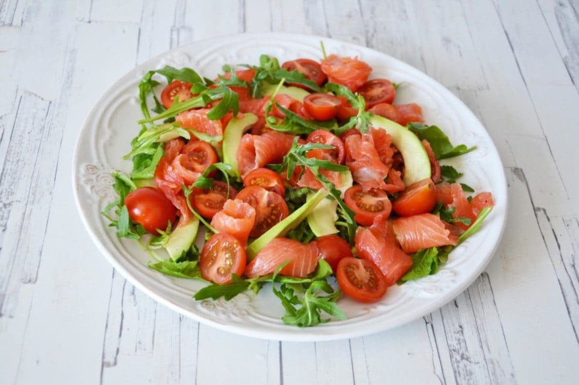 Салат с рукколой помидорами черри .сыром ,курицей.