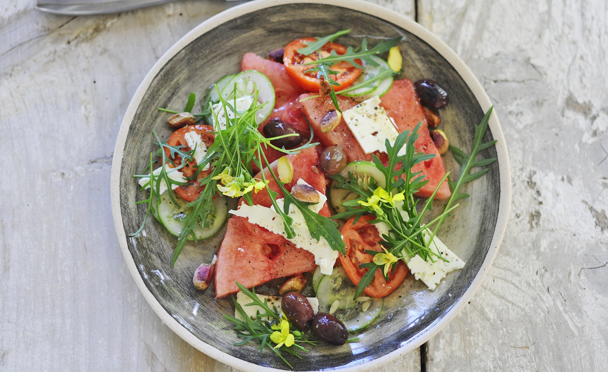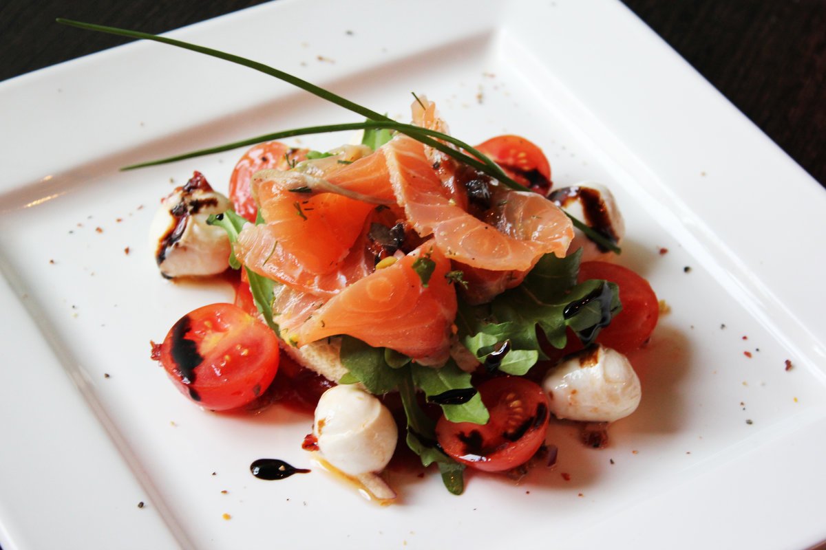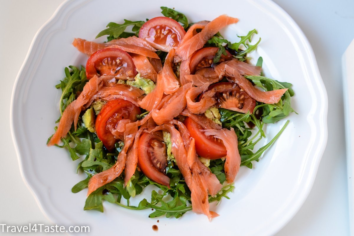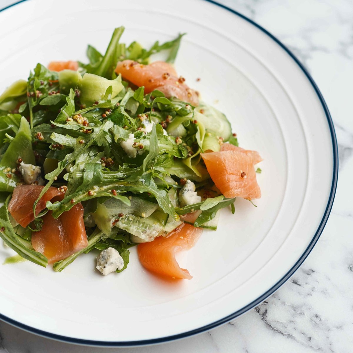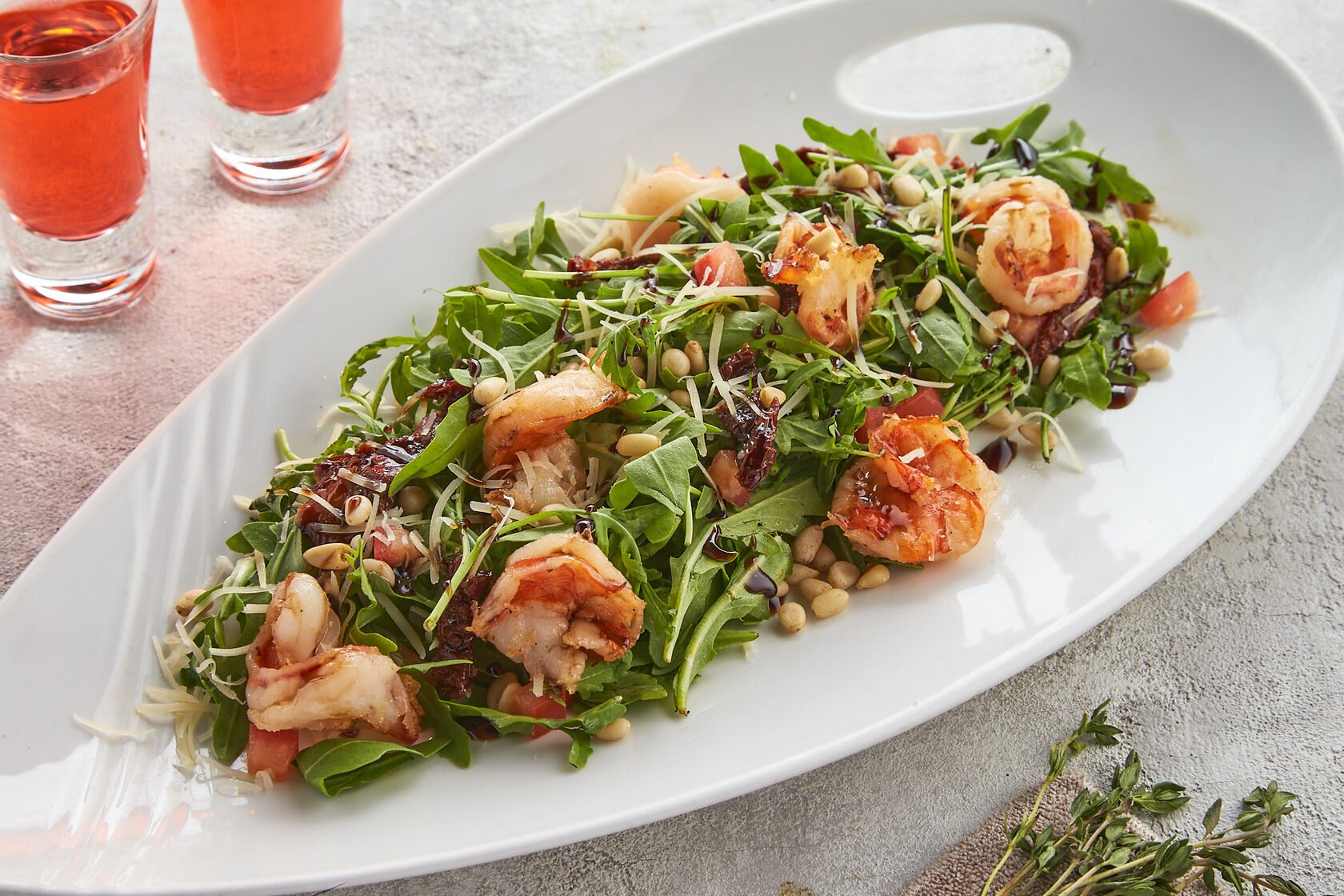 Салат с рукколой помидорами черри .сыром ,курицей.
