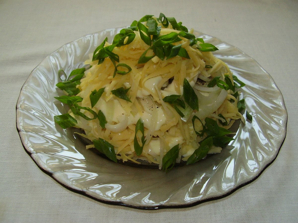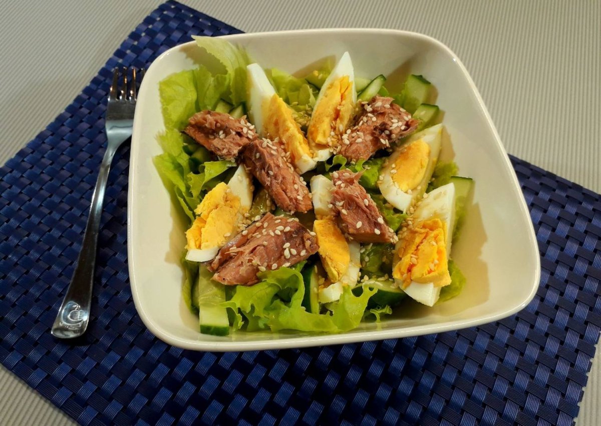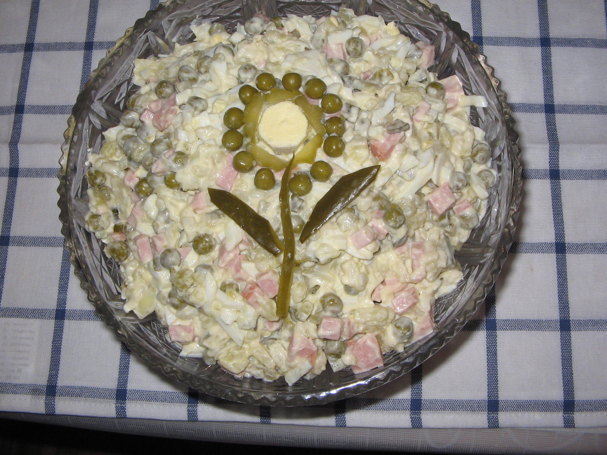 1 Банка кукурузы. 300г копченой колбасы,4 яйца