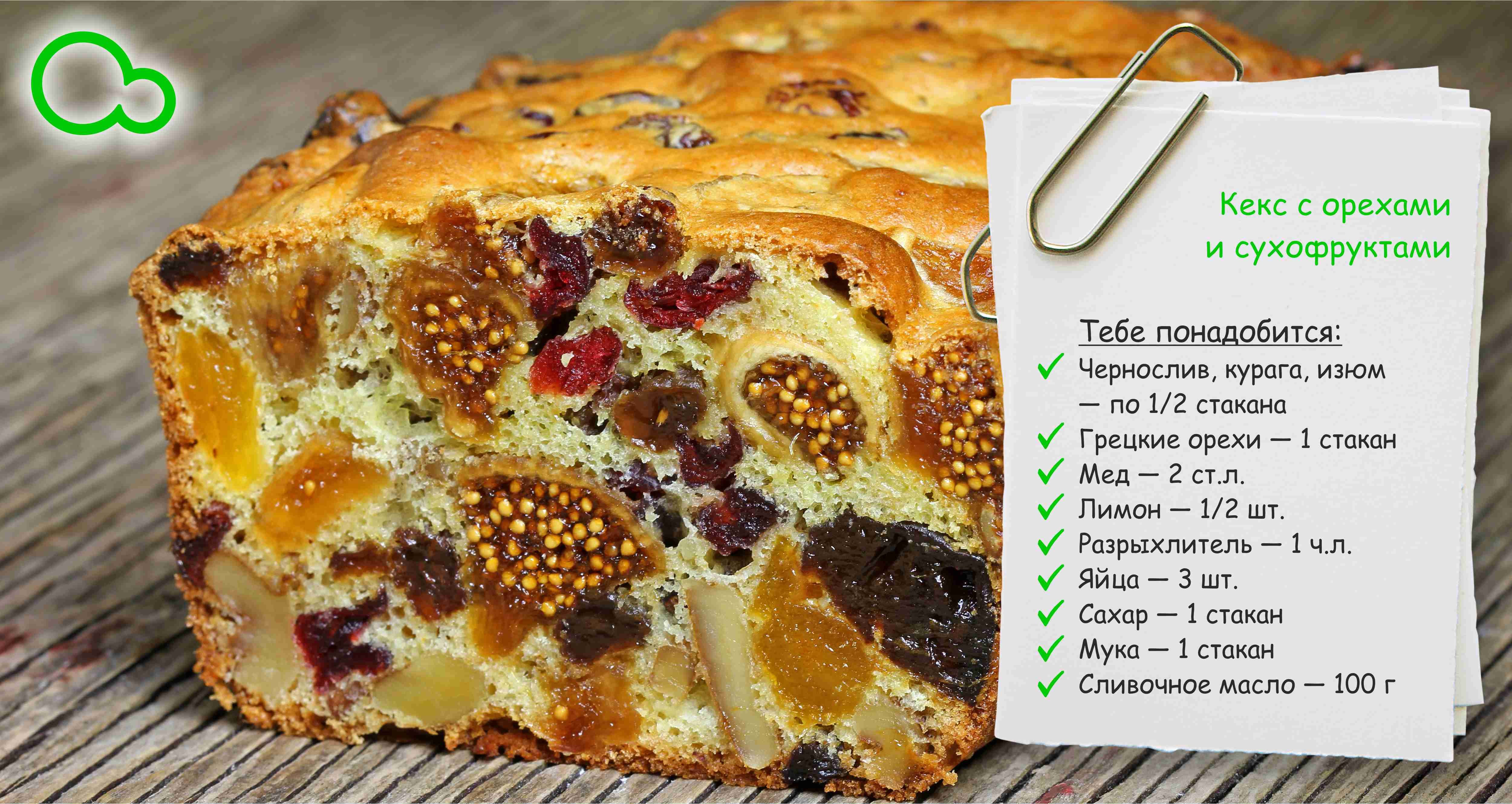 Кекс «Ореховая мазурка» с сухофруктами