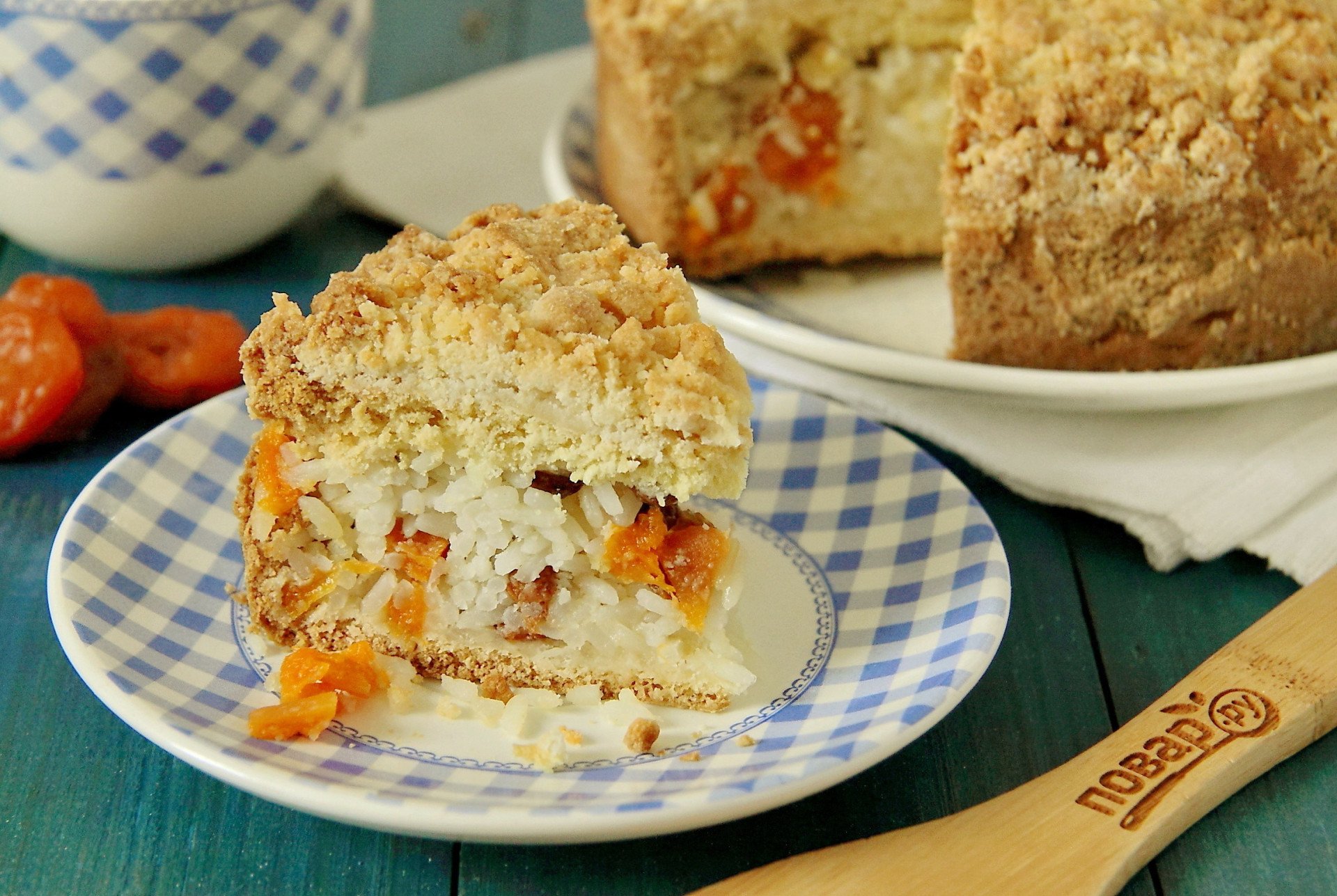 Пирог с рисом и изюмом и курагой