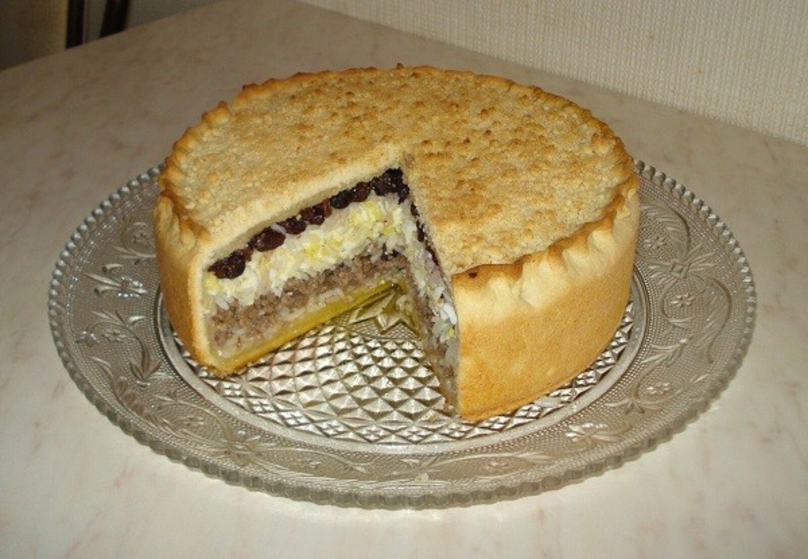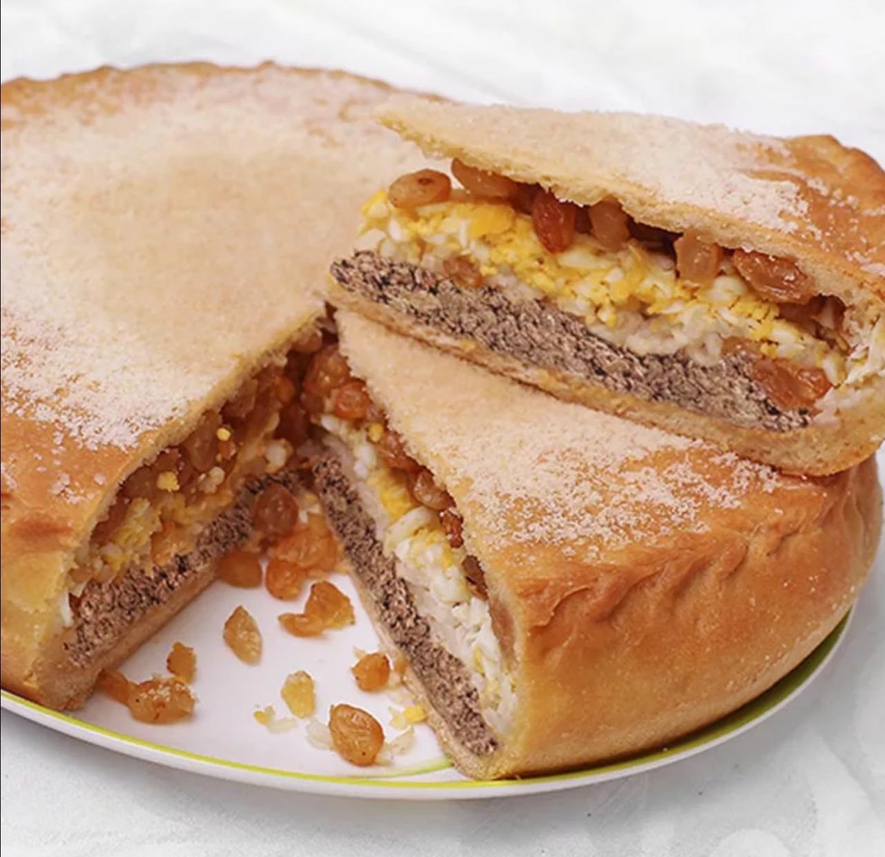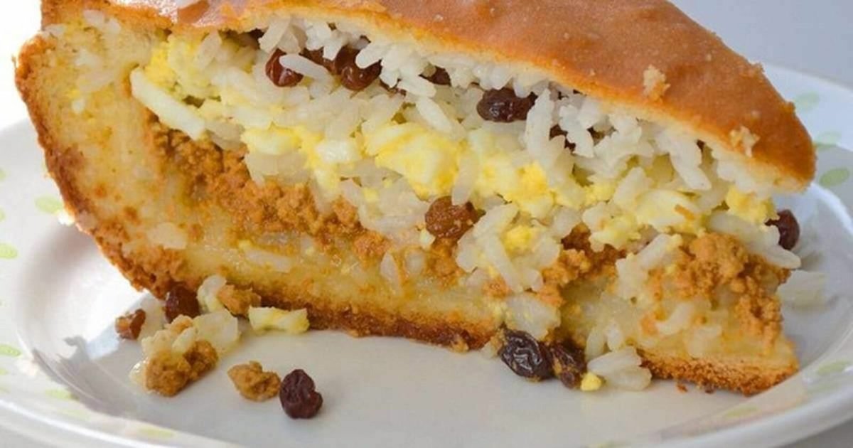 Пирог татарский с рисом яйцом творогом и изюмом