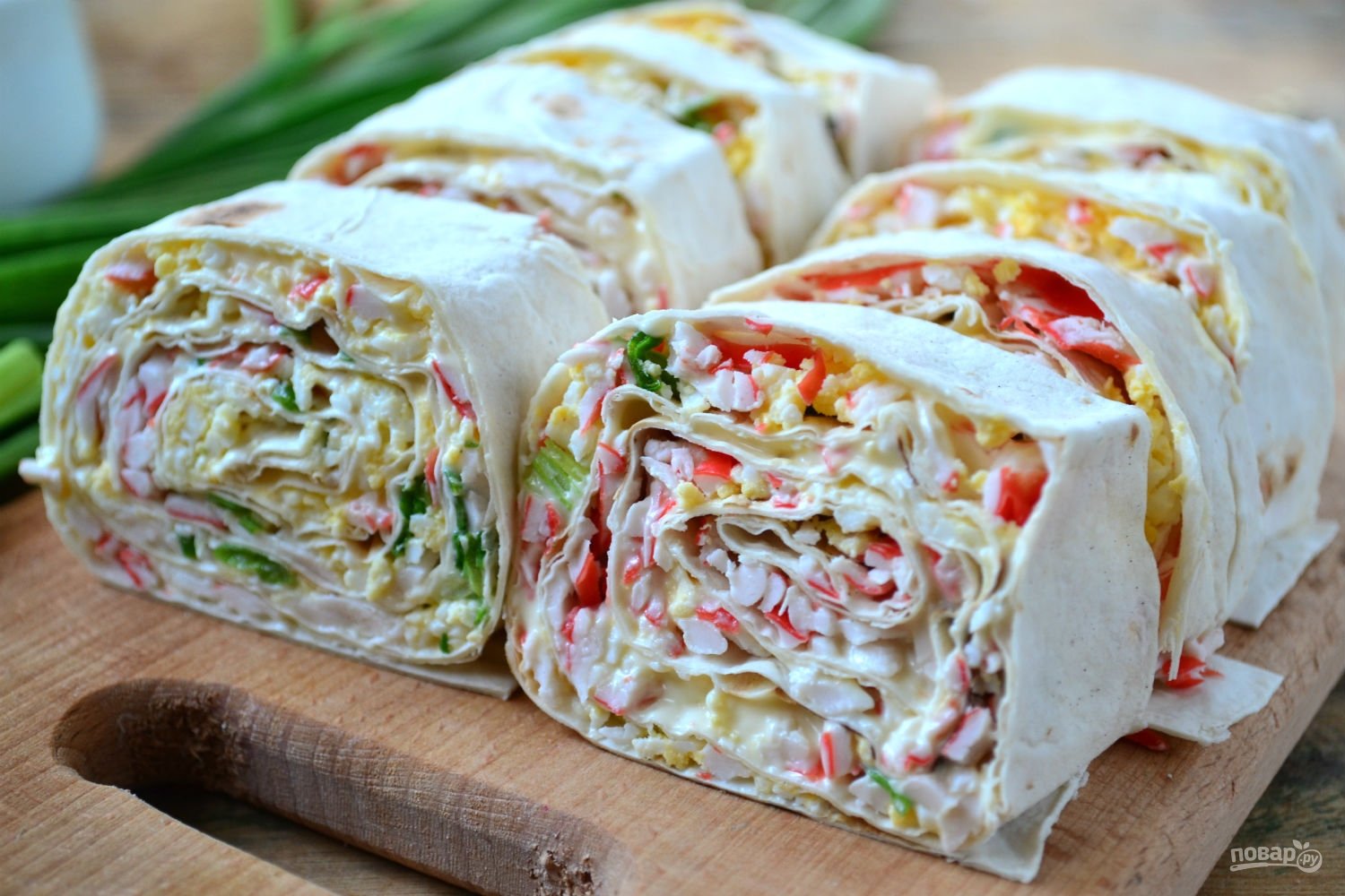 Рулет из лаваша с крабовыми палочками и сыром