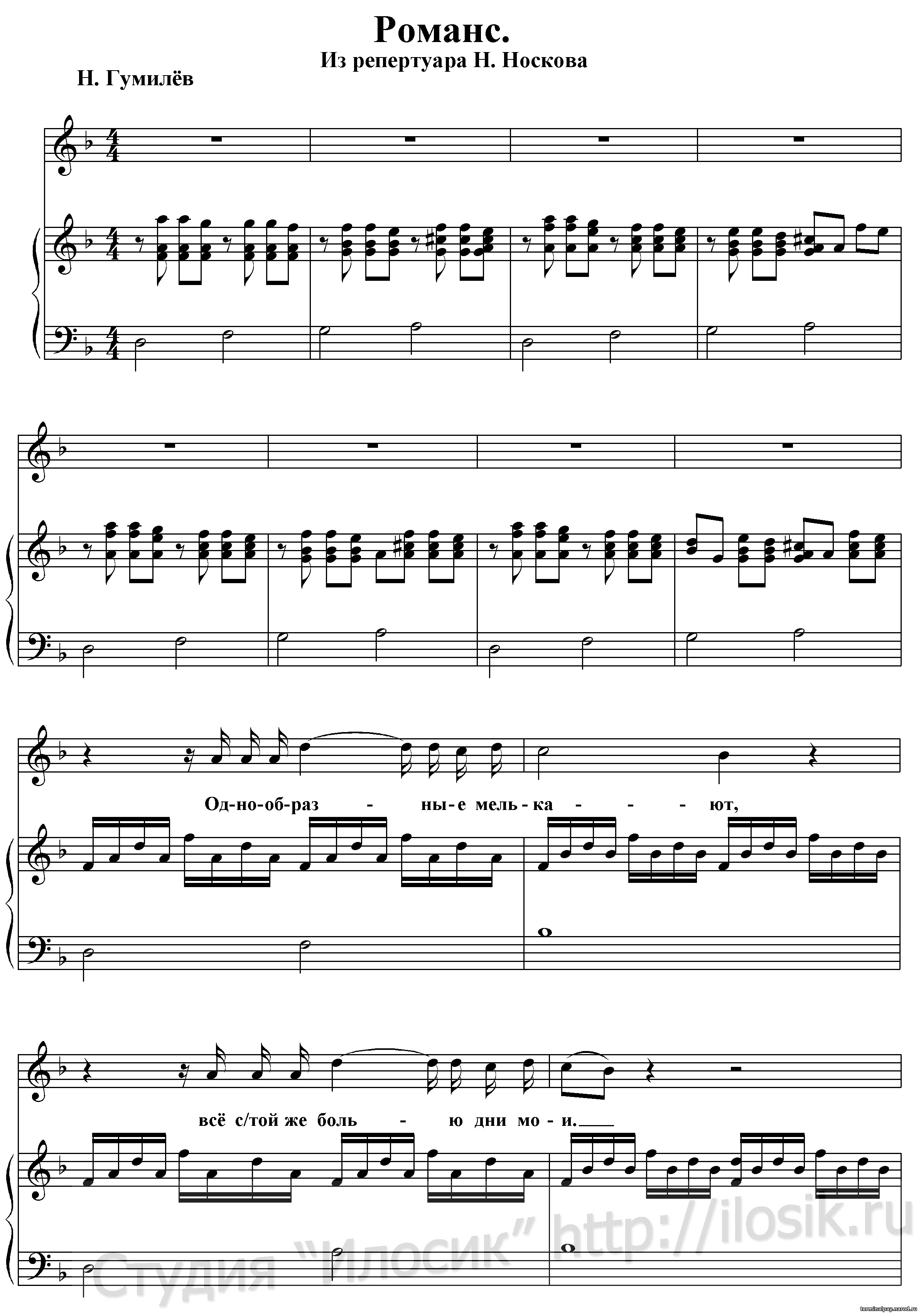 Носков романс Ноты для фортепиано