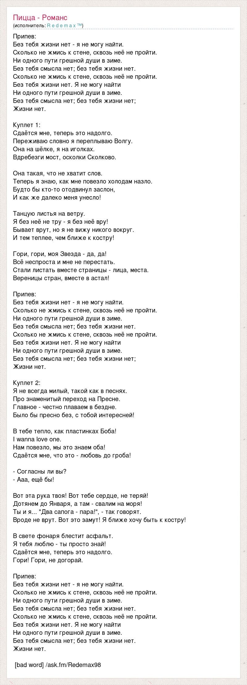 Романс пицца текст