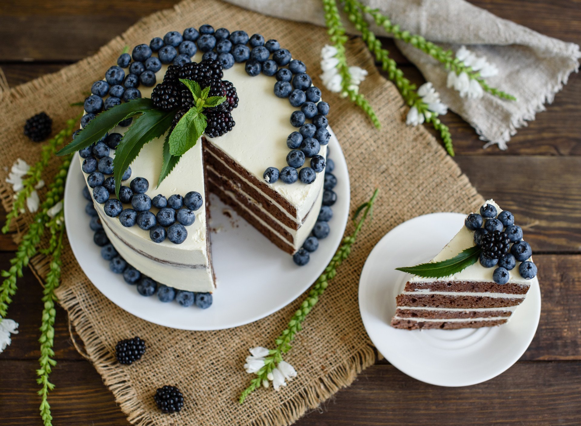Торт с ягодами ежевика и голубика