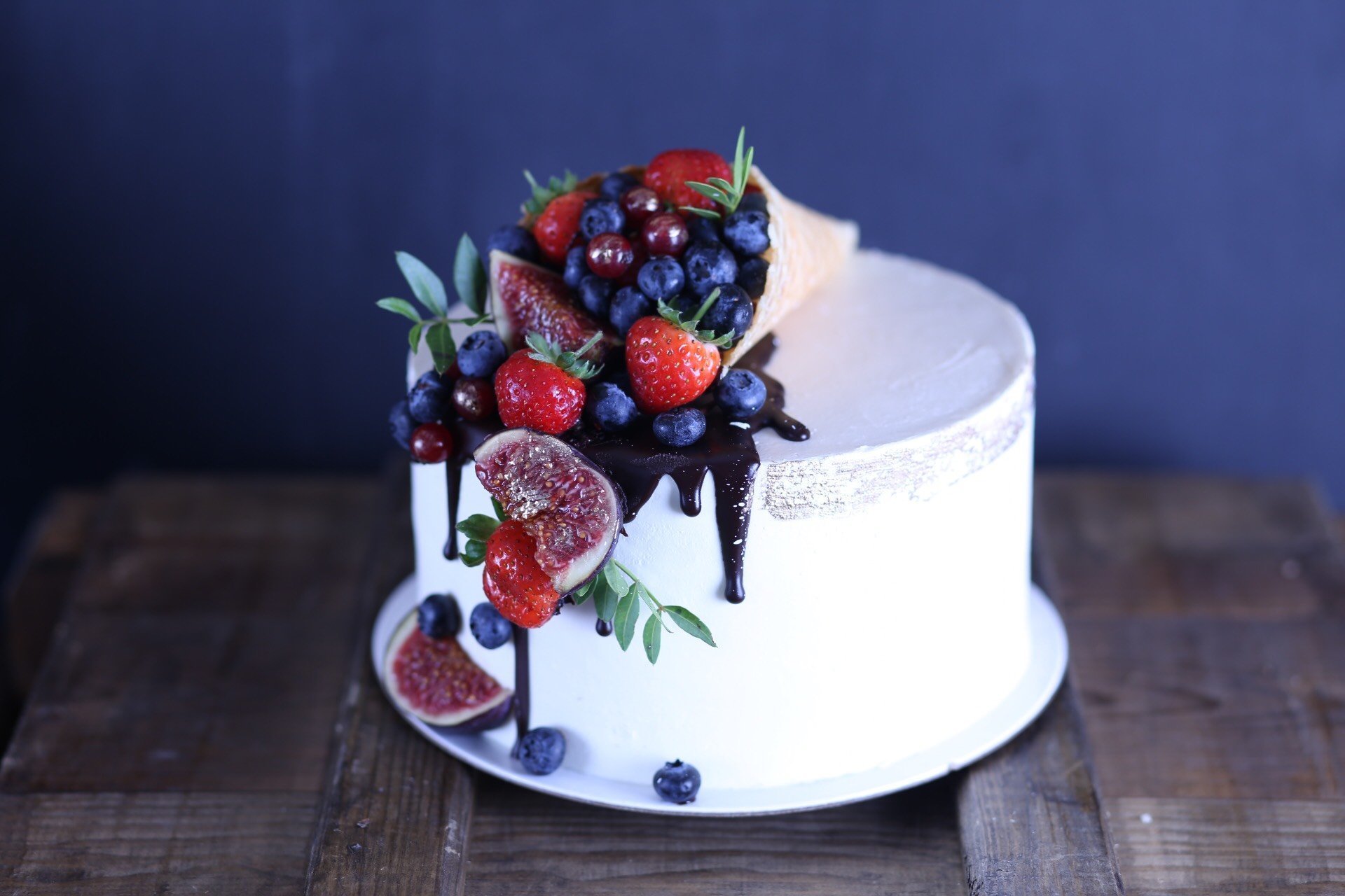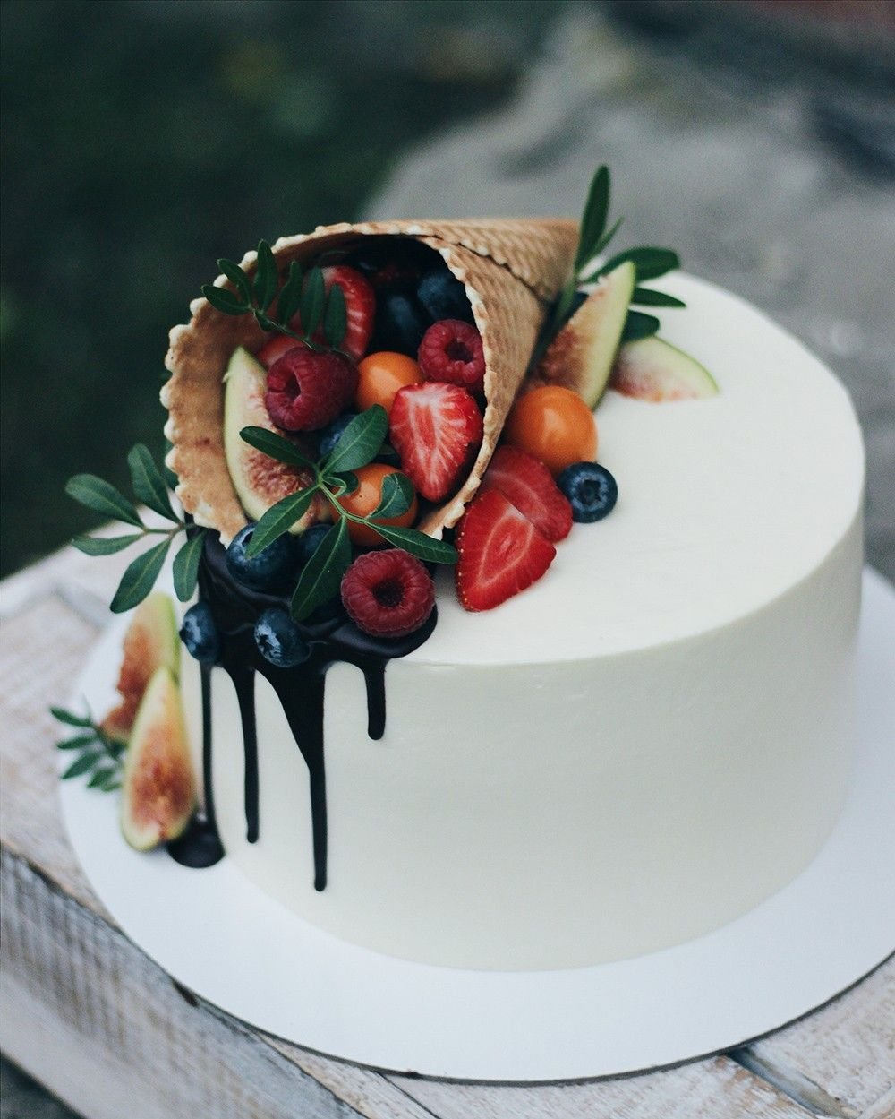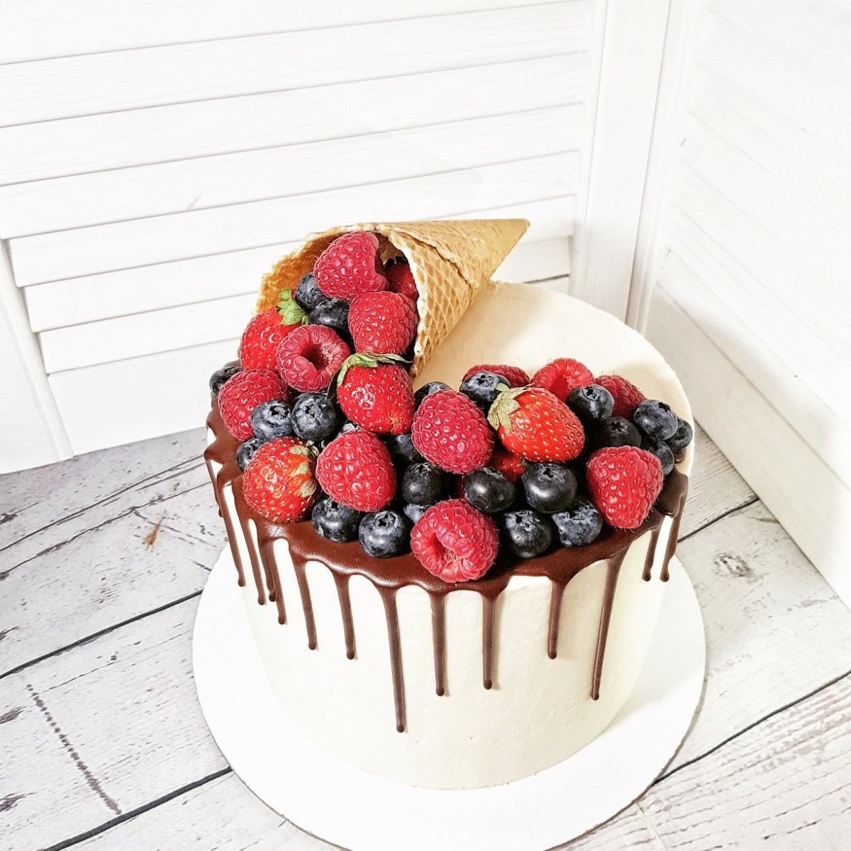 Декор торта с рожком и ягодами