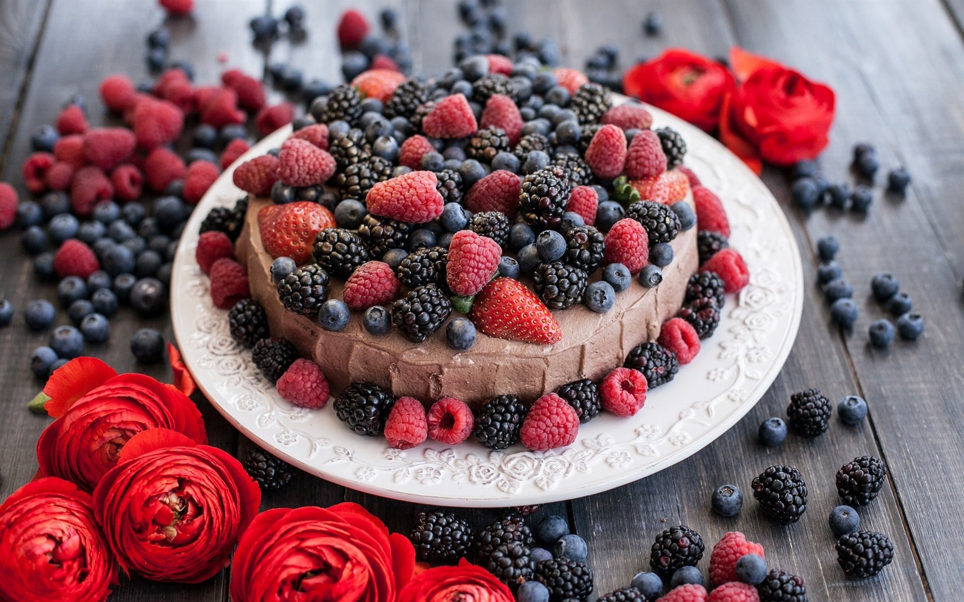 Торт с ягодами сверху декор