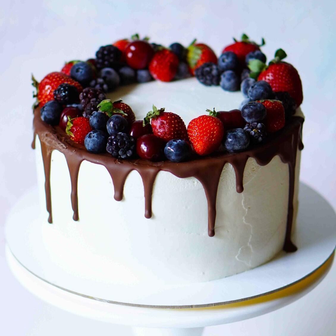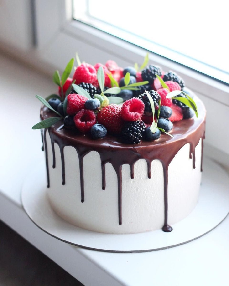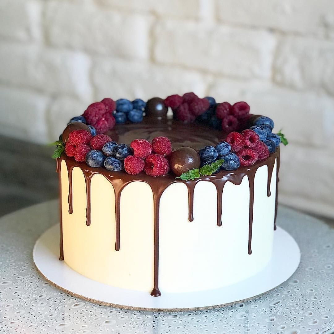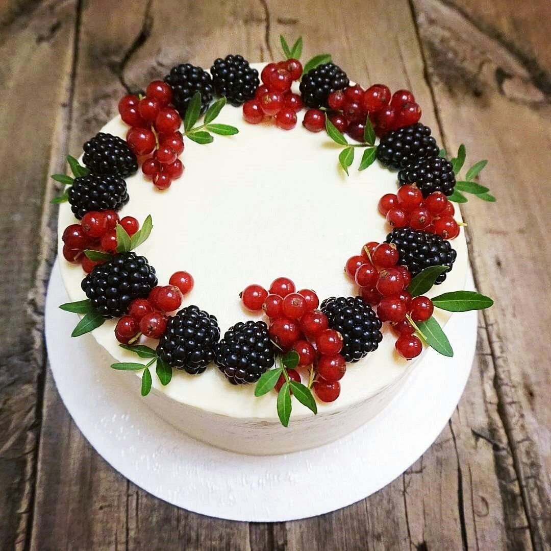 Декор белого торта с ягодами