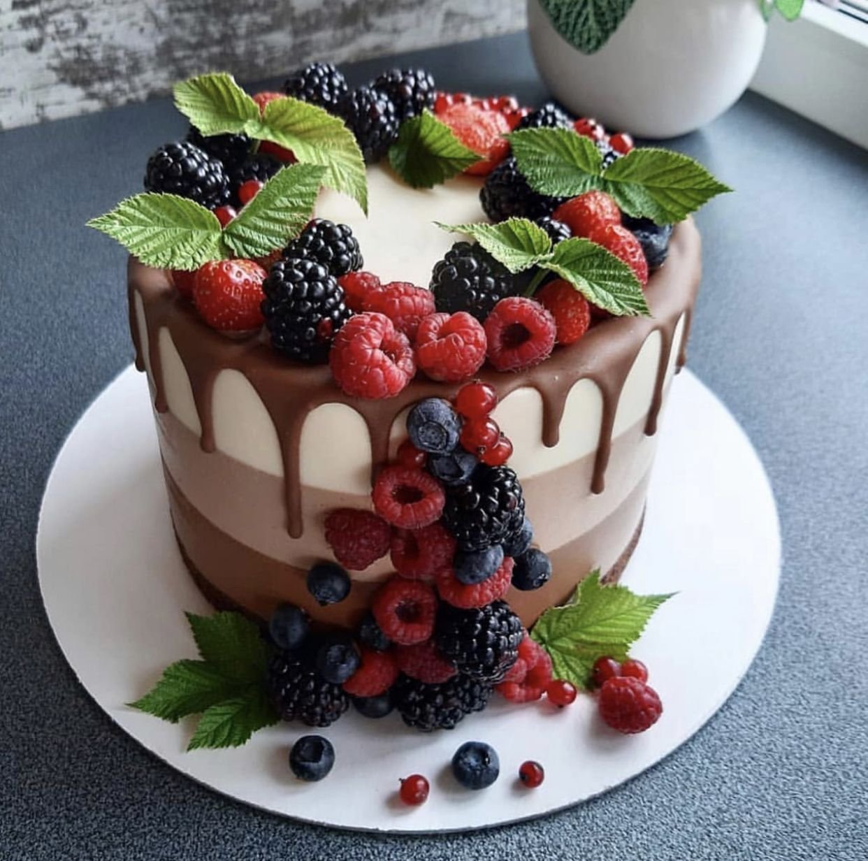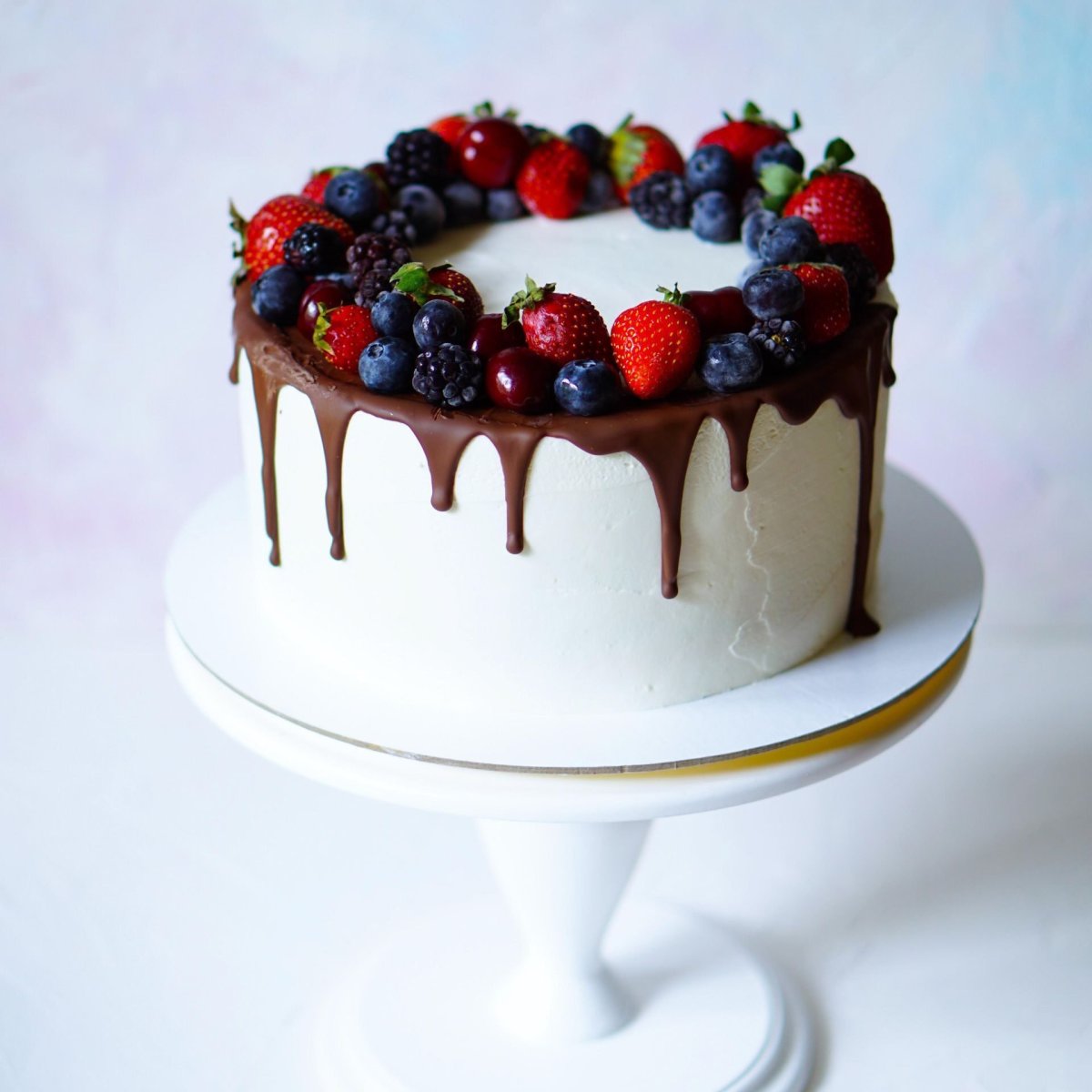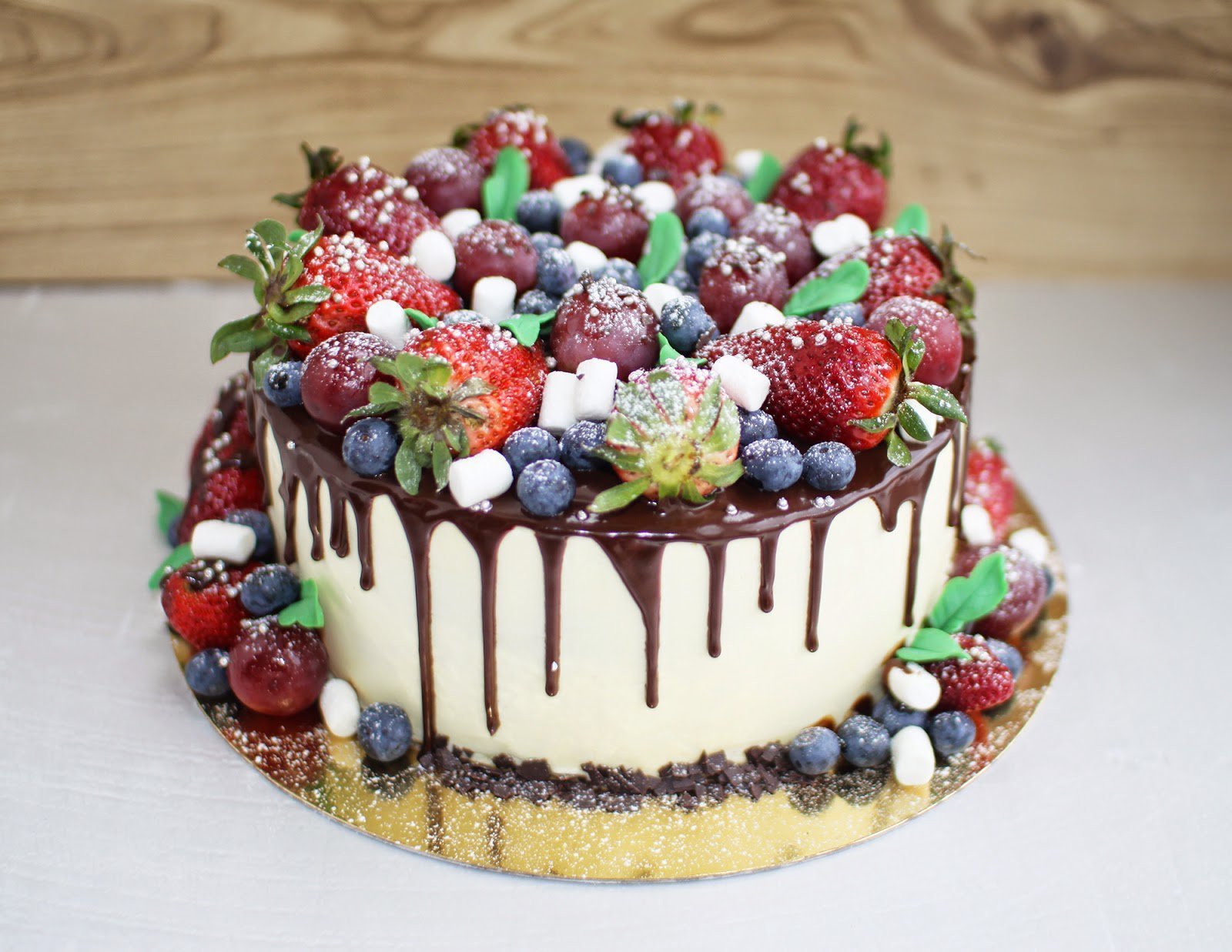 Декор белого торта с ягодами