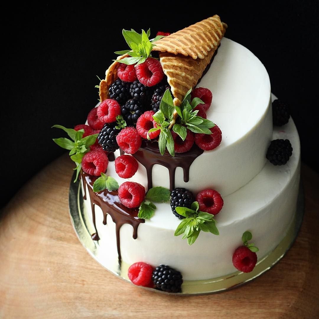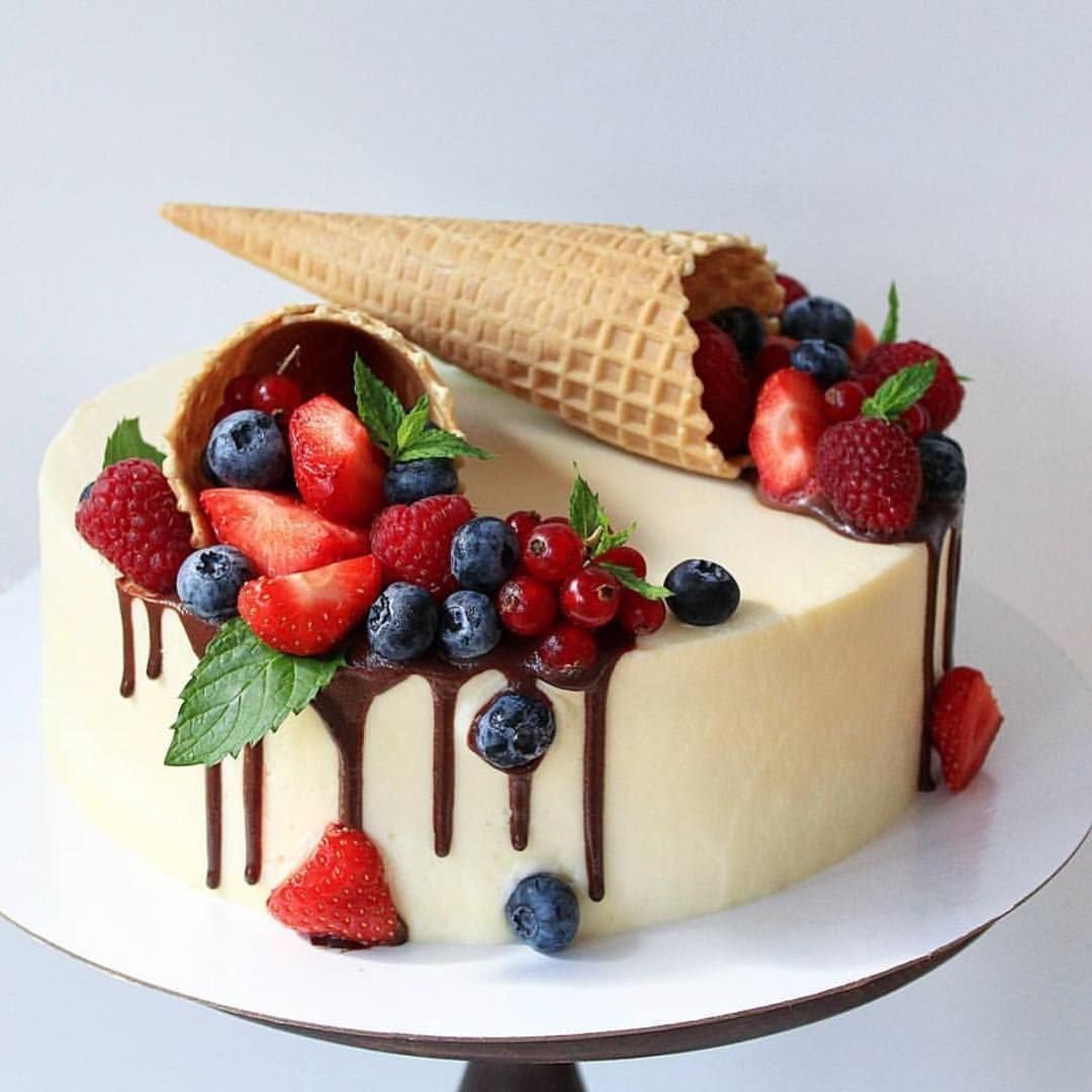 Торт с рожком и ягодами