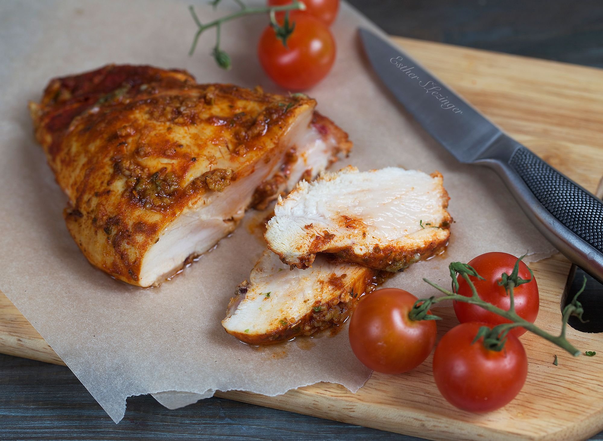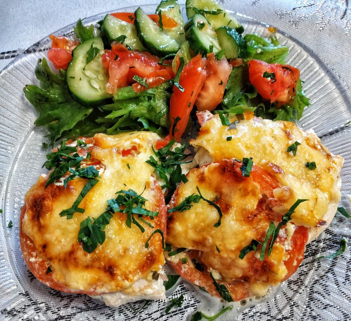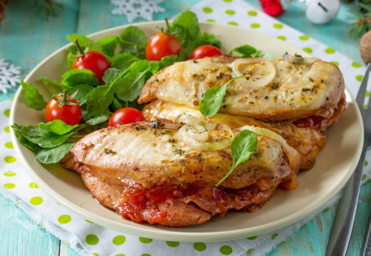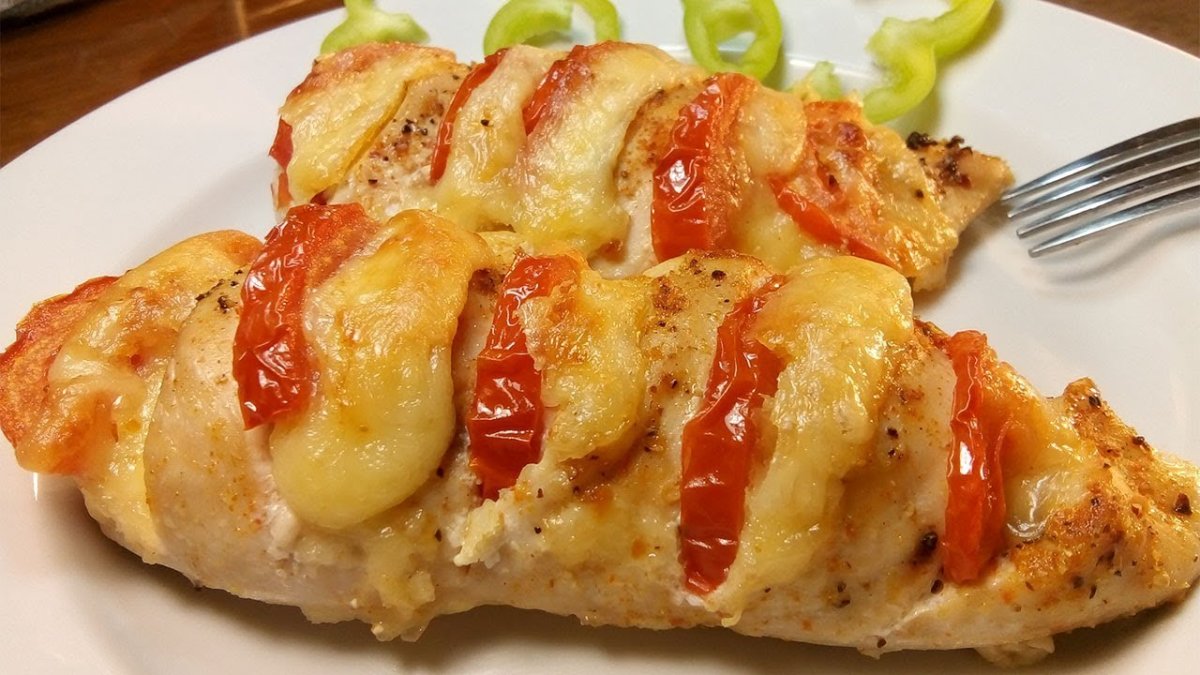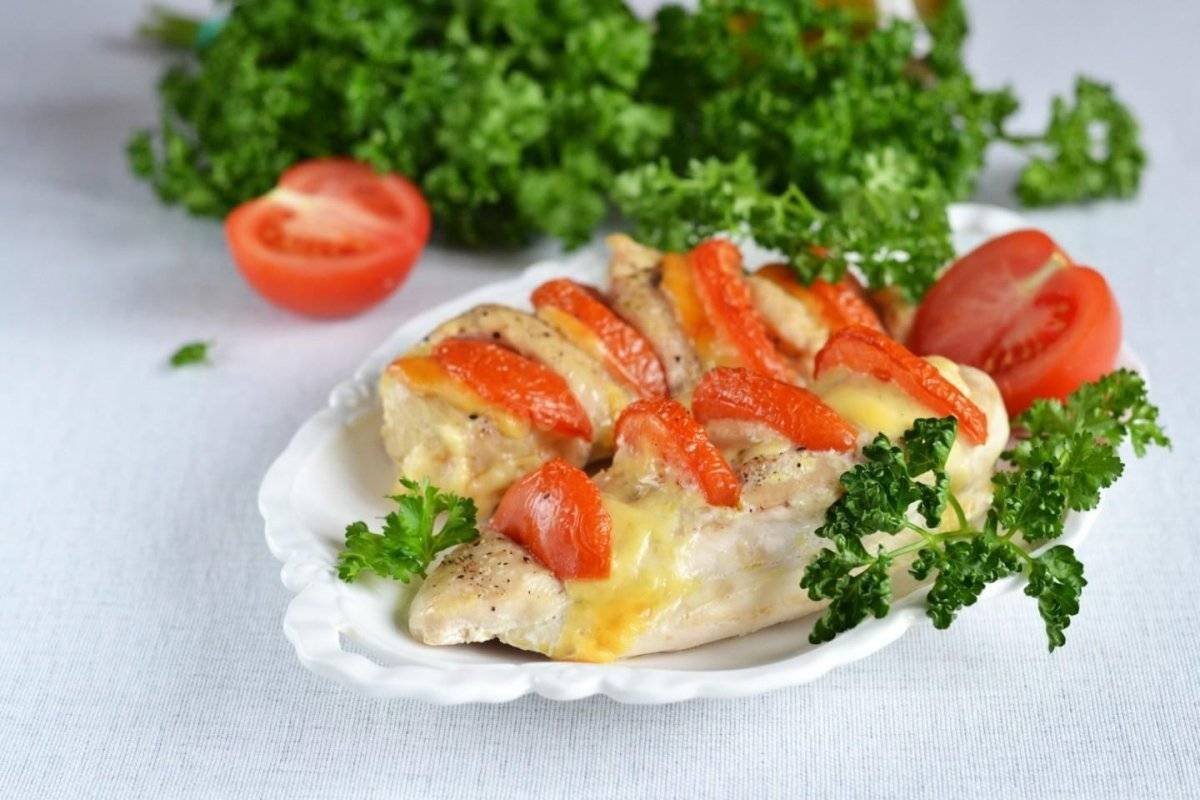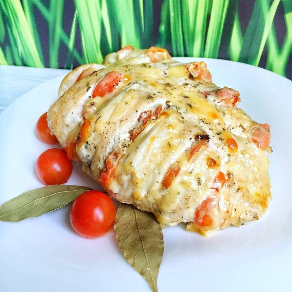 Грудка куриная запеченная в духовке с помидорами и сыром