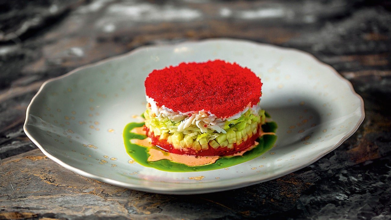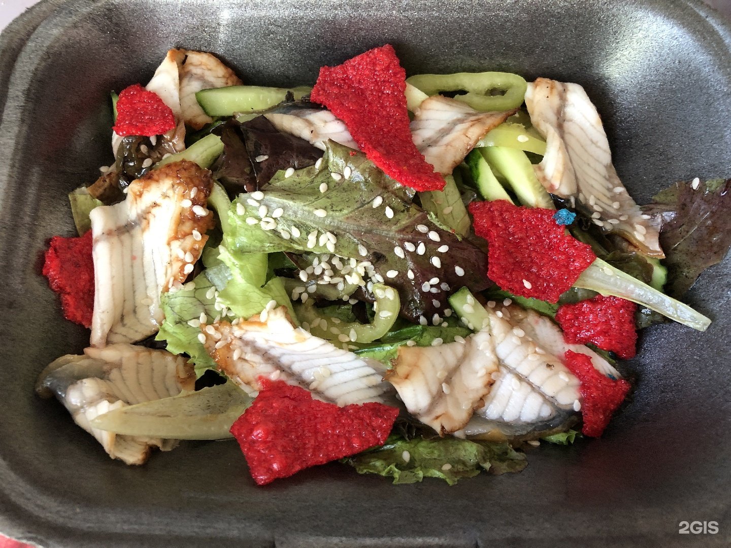 Салат с крабом и икрой тобико
