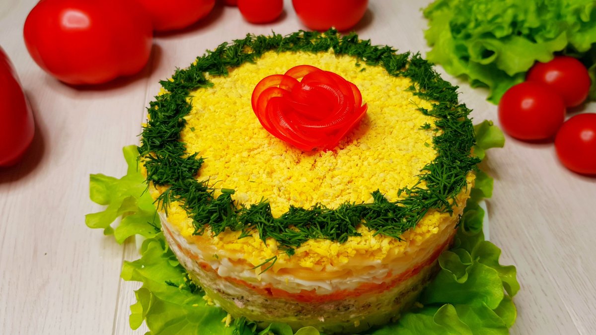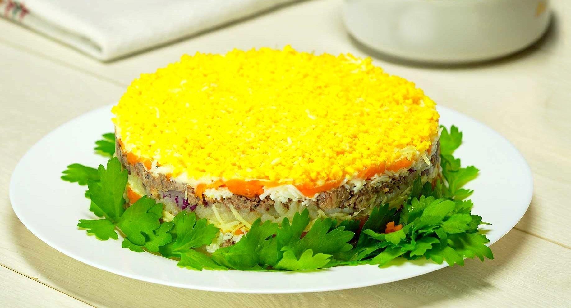 Салат торт Мимоза
