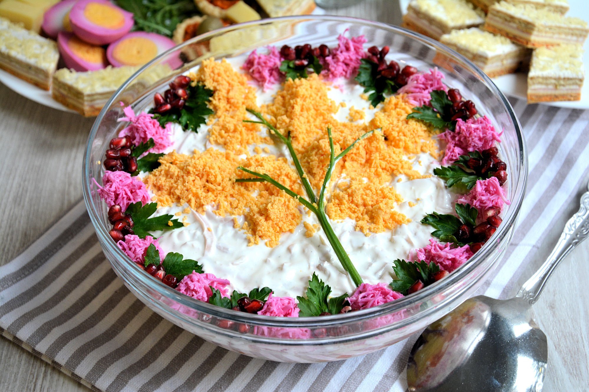 Украшение салата под шубой