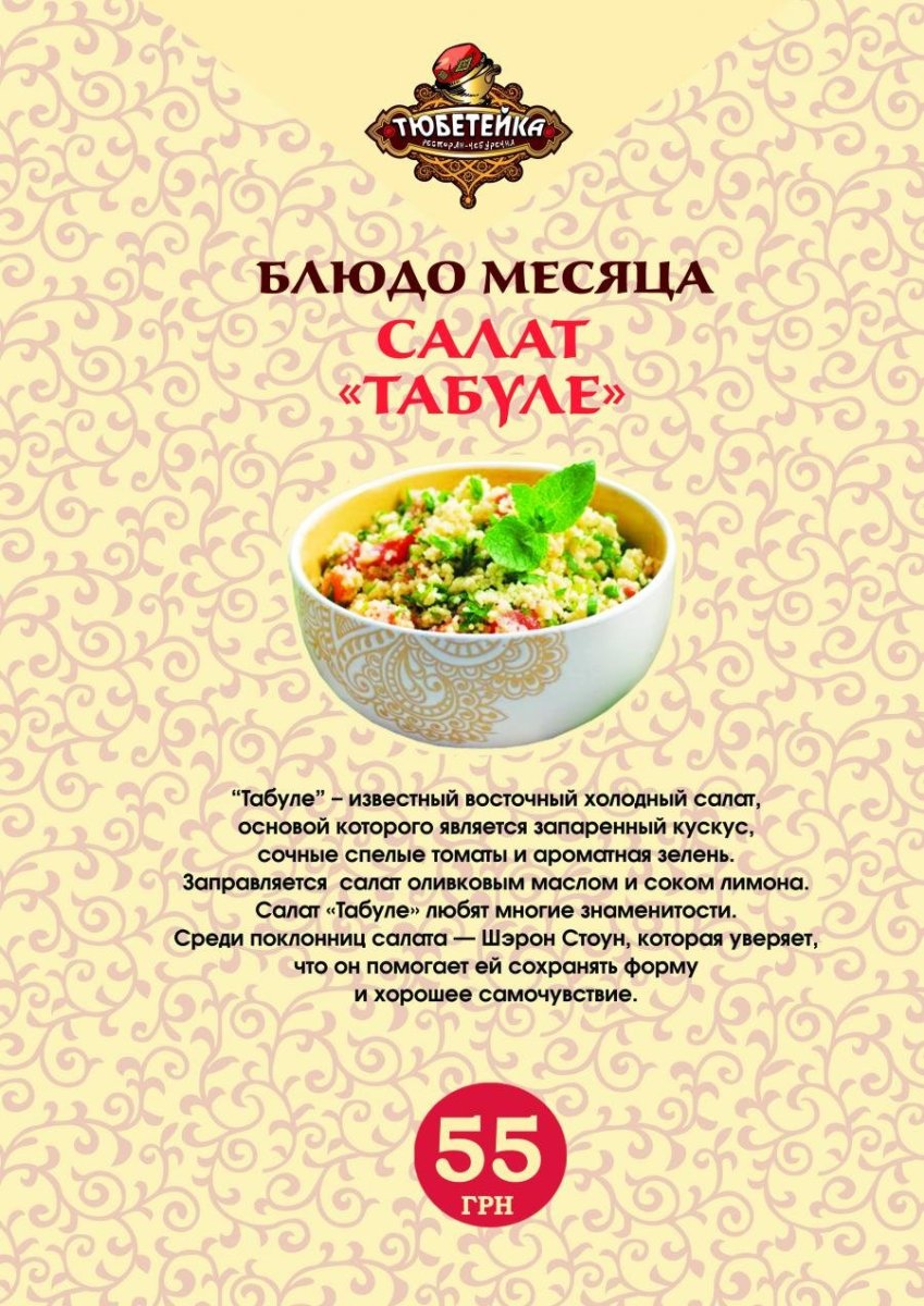 Табуле ресторан меню