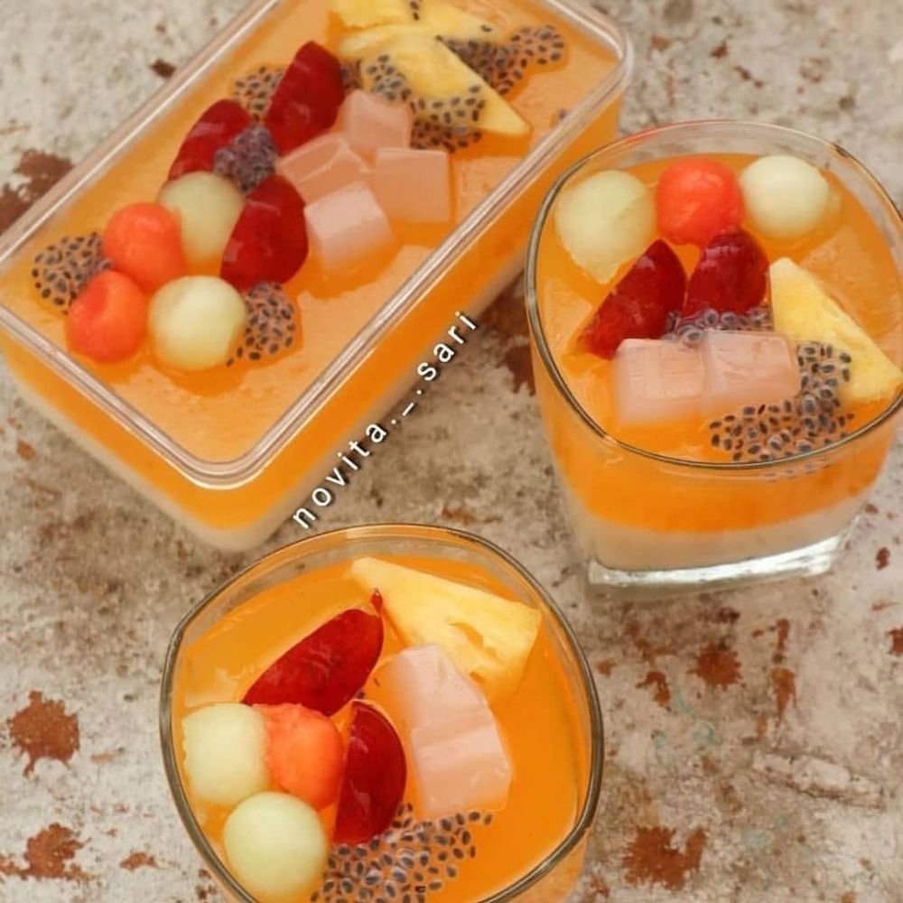 Десерт с агар-агаром без выпечки с фруктами